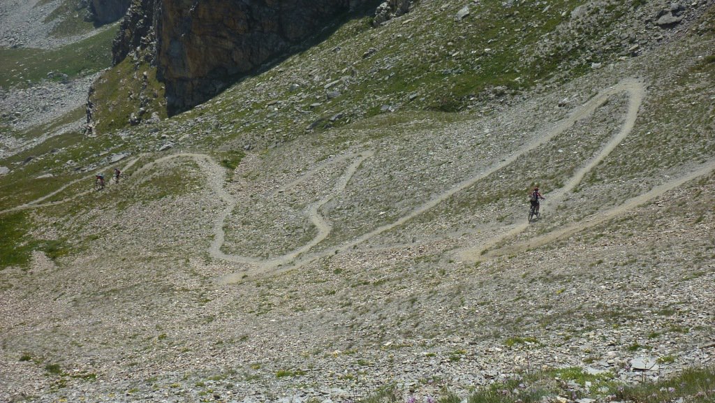 lunga gita ma davvero bella. la salita è tutta ben ciclabile, con qualche tratto di sterrata un po’ più pietrosa. dalla colletta si prende un sentiero esporto e non ciclabile verso il colle della traversiera, poi la salita finale verso la vetta del monte (non ciclabile) è davvero dura perchè dopo tutto questo dislivello non si hanno più molte forse per spingere la bici su ripido sentiero. bellissima vista dalla vetta, poi la discesa è inizialmente un po’ difficile dato il sentiero stretto, pietroso ed esposto. seguono vari tornanti con fondo morbido (per me non ciclabili ma per chi è più bravo sicuramente divertenti). la parte finale è davvero bella su single track su fondo erboso fino ad arrivare alle malghe e alla sterratona che porta a chiappera (in parte asfaltata). tanti altri ciclisti sul percorso, alcuni scesi sul versante di salita. purtroppo abbiamo scelto il giorno della festa della madonna delle grazie quindi c’erano parecchie macchine sulla prima parte del percorso.