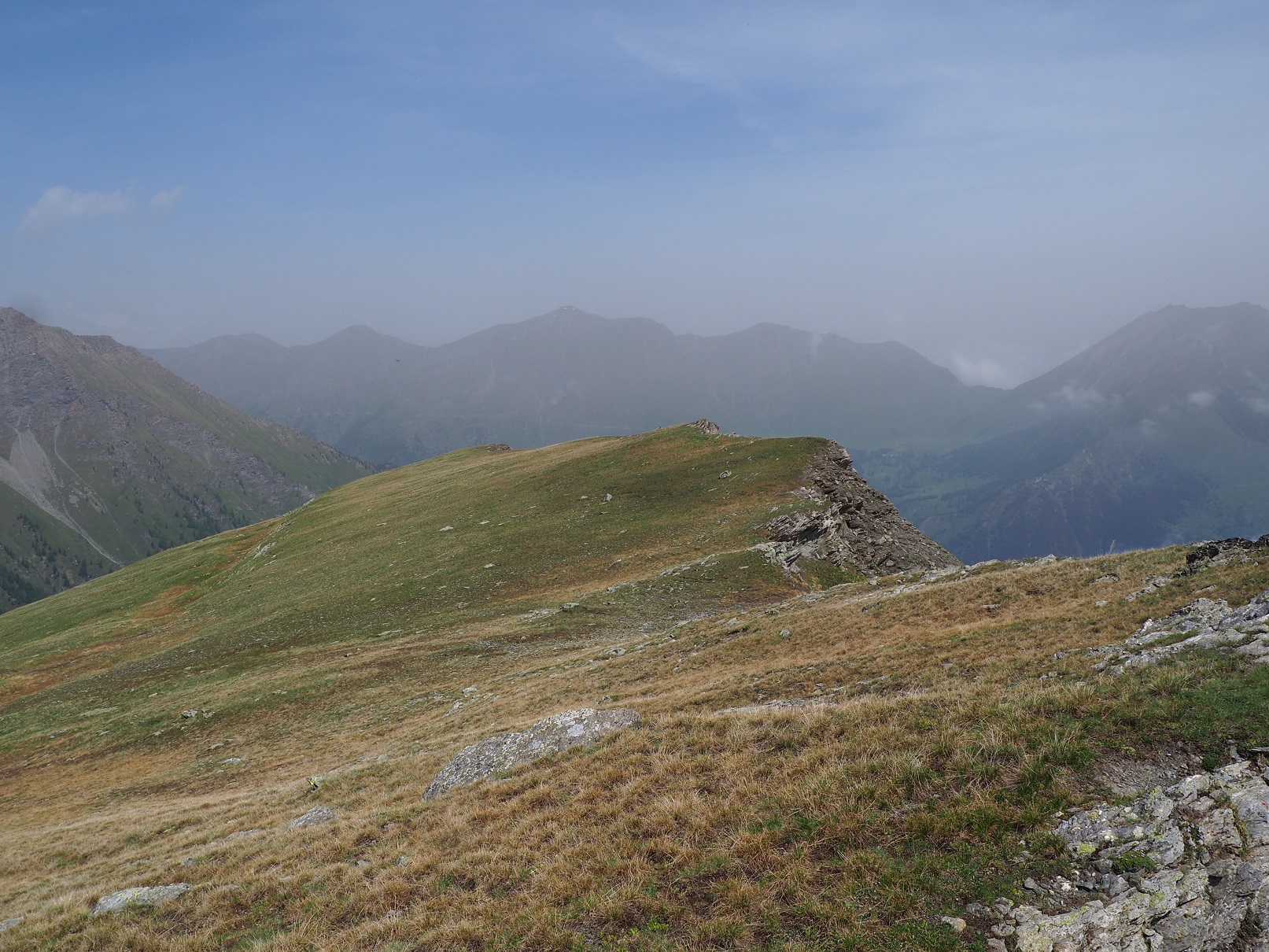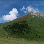 A quel punto girare a sinistra su sentiero meno evidente e risalire l’ampio canalone, che finisce poco sotto la cima trasformandosi in bei prati, sui quali risalire fino alle due o tre punte del nostro Monte.