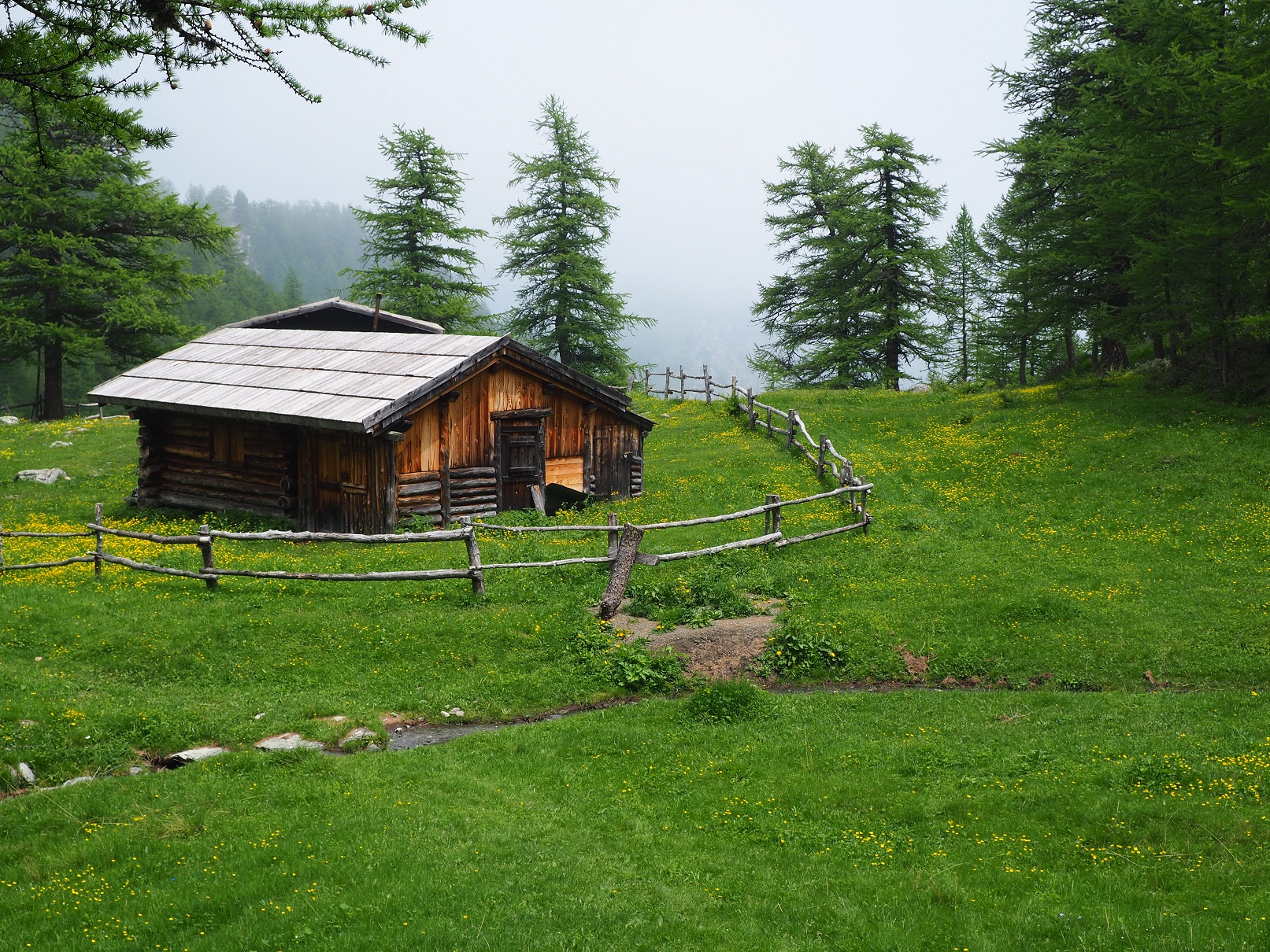 Ci si addentra nuovamente nel bosco fitto, sempre su buon sentiero. Si attraversa un torrente – canalone, protetto da una staccionata di legno, fino ai pressi della Bergeria Albergian (qui si può arrivare anche con percorso più diretto subito dopo il ponte in legno e seguendo la poco evidente palina segnaletica in legno che indica la Bergeria Albergian).