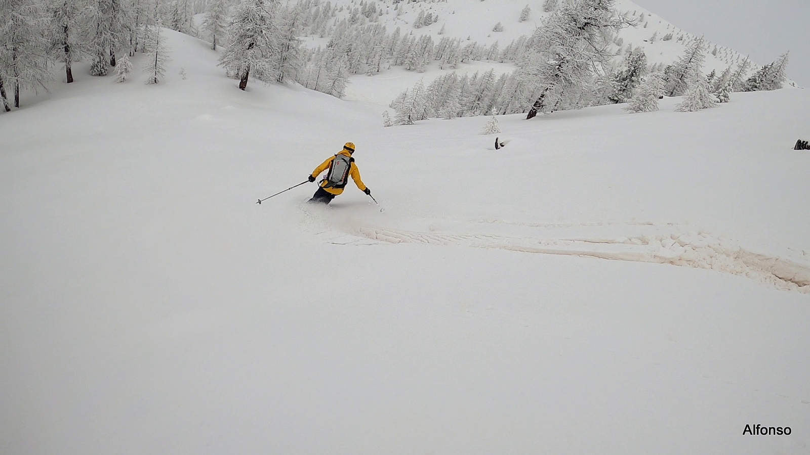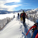 Discesa attraverso le piste da sci, lungo il tragitto di andata, oppure liberamente nel bosco rado (Meglio nella parte alta dell’itinerario).