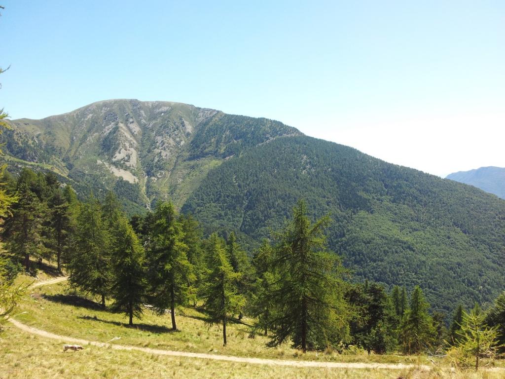 Da qui la salita aumenta come difficoltà e si toccano Piccolo Faetto e Gran Faetto, poco oltre il quale termina l’asfalto (4 km). Si prende poco prima di Tourunt una sterrata sulla destra , inizialmente disconnesse, poi migliora anche se rimane sempre oltre il 10% di pendenza. Alcuni tornanti portano al punto panoramico di Airetto (bacheca) dove si può rifiatare, ed appare il vallone che scende dal Colle della Roussa. Si prosegue a mezzacosta con un tratto in falsopiano, fino alla frazione Colletto, dove si riprende a salire. Con un ultimo sforzo si supera Pituniera e una rampa al limite del ribaltamento fa scollinare finalmente a Prato del Colle, dove termina la strada 9 km. Dalle graziose case, volendo, si segue la cresta di destra per pochi minuti raggiungendo la vicina sommità del Monte Bercia, un po’ boscoso ma che cade a picco sul versante di Villaretto.