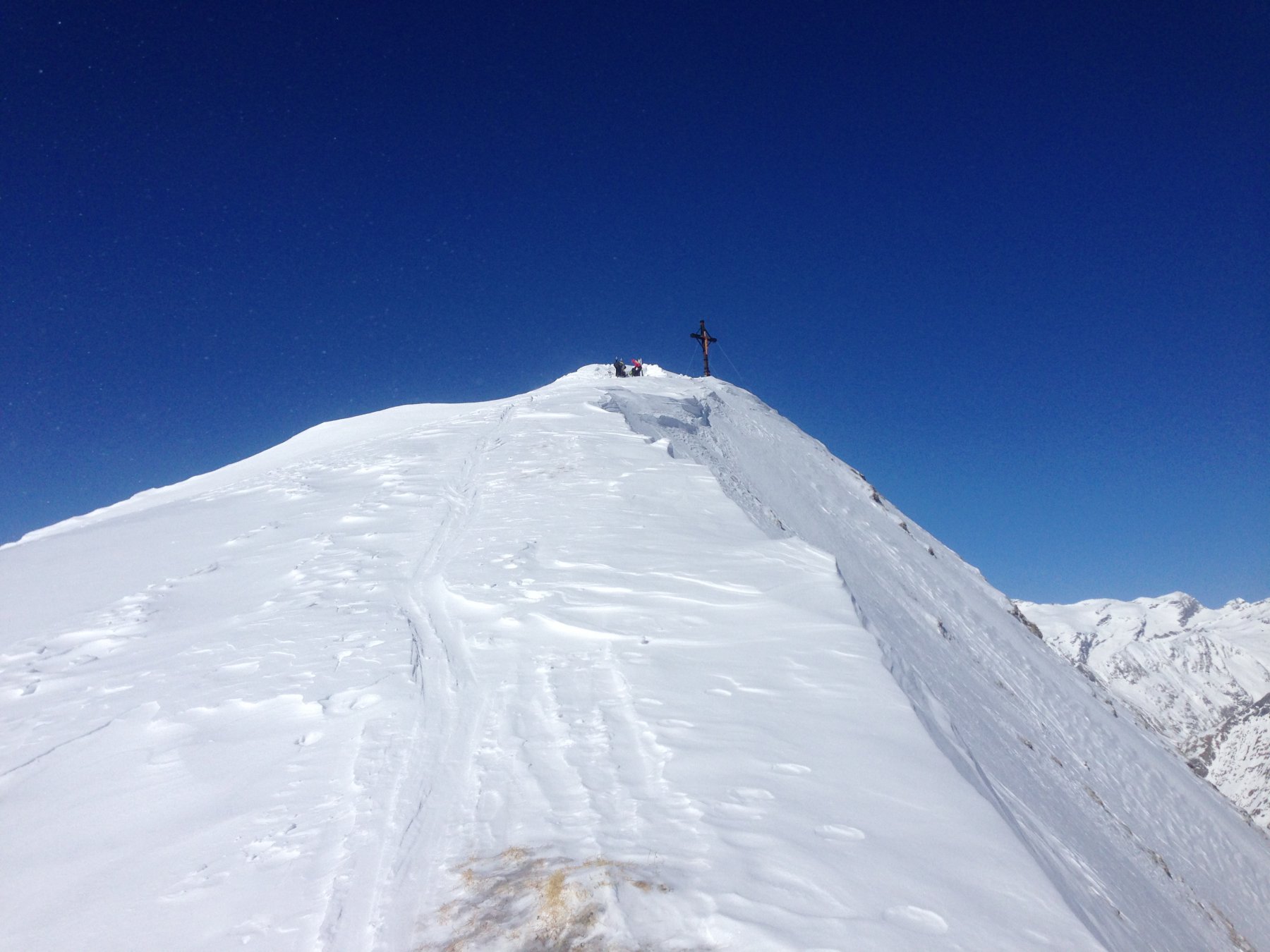 Si procede a SO lungo il sentiero ben segnato dai bolli tagliando i tornanti della carrozzabile che sale alla MArcher Alm. Il bosco si fa via via meno fitto. All’altezza della Marcher Alm si svolta decisamente verso Sud. fino intorno ai 200mt dove si segue la spalla tra in direzione SO fino ai 2300. Poi con percorso ad arco evidente fino alla cima (O poi N).
