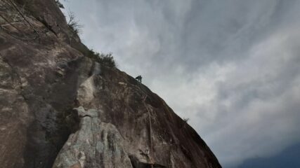 Su questa bella parete, saliamo la via HUMAN RIGHTS ( 4 bei tiri max 6a+)