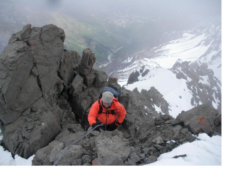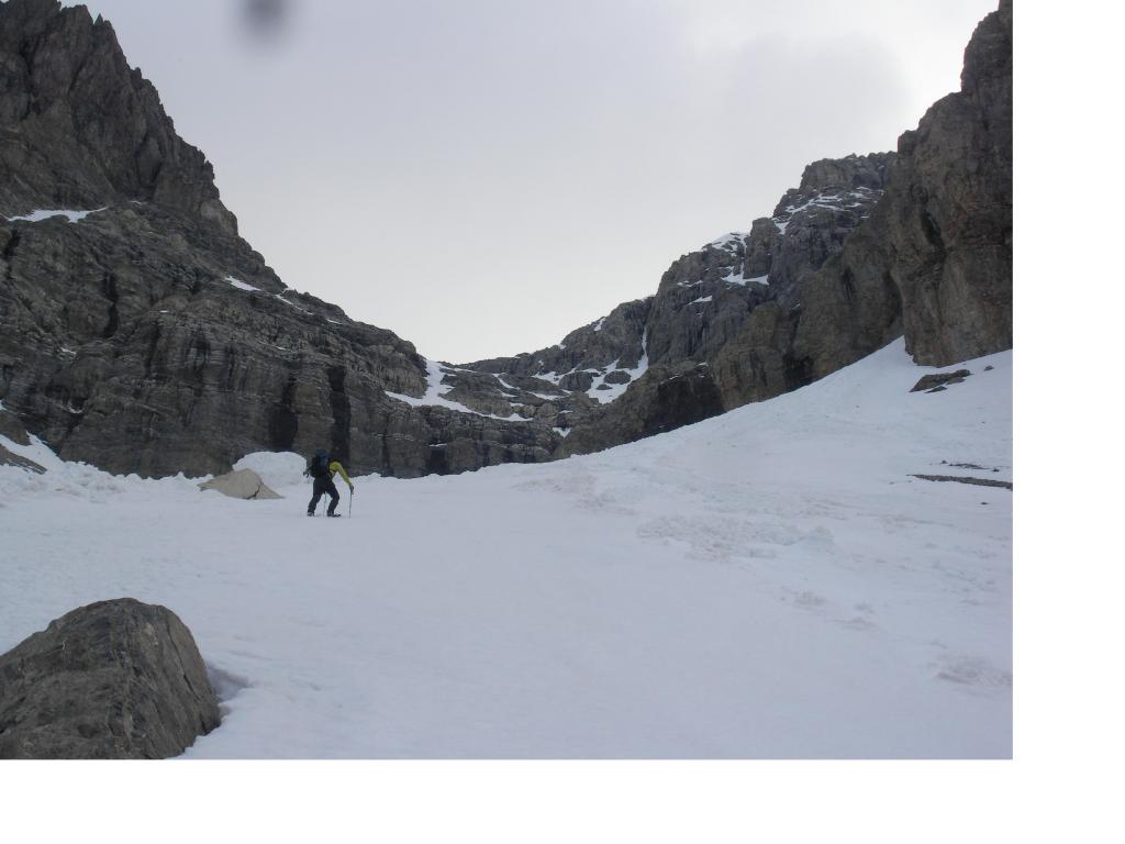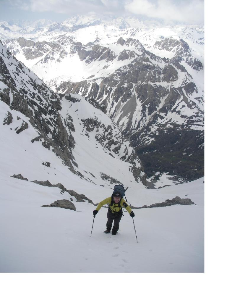 La Rocca Bernauda non e’ una montagna attraente, ancor meno invitante ne e’ il suo approccio dal basso. Poiche’ da qualunque lato la si guardi, ostenta fianchi ripidi in prevalenza detritici e faticosi da risalire. Ma che se affrontati quando la montagna e ancora ben innevata, non presentano grosse difficolta’. Una gita a ragione appartenente a quella categoria di salite adatte a chi e’ alla ricerca di alternative alle classiche mete di sempre.Peccato la neve non abbia subito la trasformazione che ci aspettavamo per via dello zero termico confinato ormai alle quote elevate, e che ha finito per accrescere sensibilmente il disagio che si prova a sprofondare ad ogni passo.(detrito mobile o neve sfondosa e molle non fa molta differenza). Meteo discreto al mattino, peggiorato con l’arrivo in vetta. Panorama rimandato, con l’unica eccezione a sud, da dove in uno squarcio tra le nuvole si vedeva Bardonecchia. La pioggia ha fatto il suo ingresso gia’ all’atto di ridiscendere la non banale cresta che dalla vetta si riconnette al colle, per poi ricedere il posto al sole, ma non prima di aver posato piede sui morbidi prati verdi del fondo valle. Con Alessandro