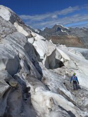 Condizioni ancora buone, ma inizia ad affiorare ghiaccio sui pendii ripidi nevosi. Per l’attacco conviene fare la ferrata sulla sinistra, il pendio di destra è ormai nero e poco invitante. Abbiamo usato 4 viti da ghiaccio e 4 friend medio piccoli. Due corde da 30 mt: la seconda corda l’abbiamo usata solo per fare l’ultima doppia della via normale (quella che deposita sul ghiacciaio). Il giorno successivo, siamo rientrati facendo la traversata dei piz Palù (condizioni buone, no ghiaccio sulla cresta). Inizia ad essere molto brutta la parte finale del ghiacciaio, aggiornarsi sulle condizioni perché potrebbero crollare ponti di neve.