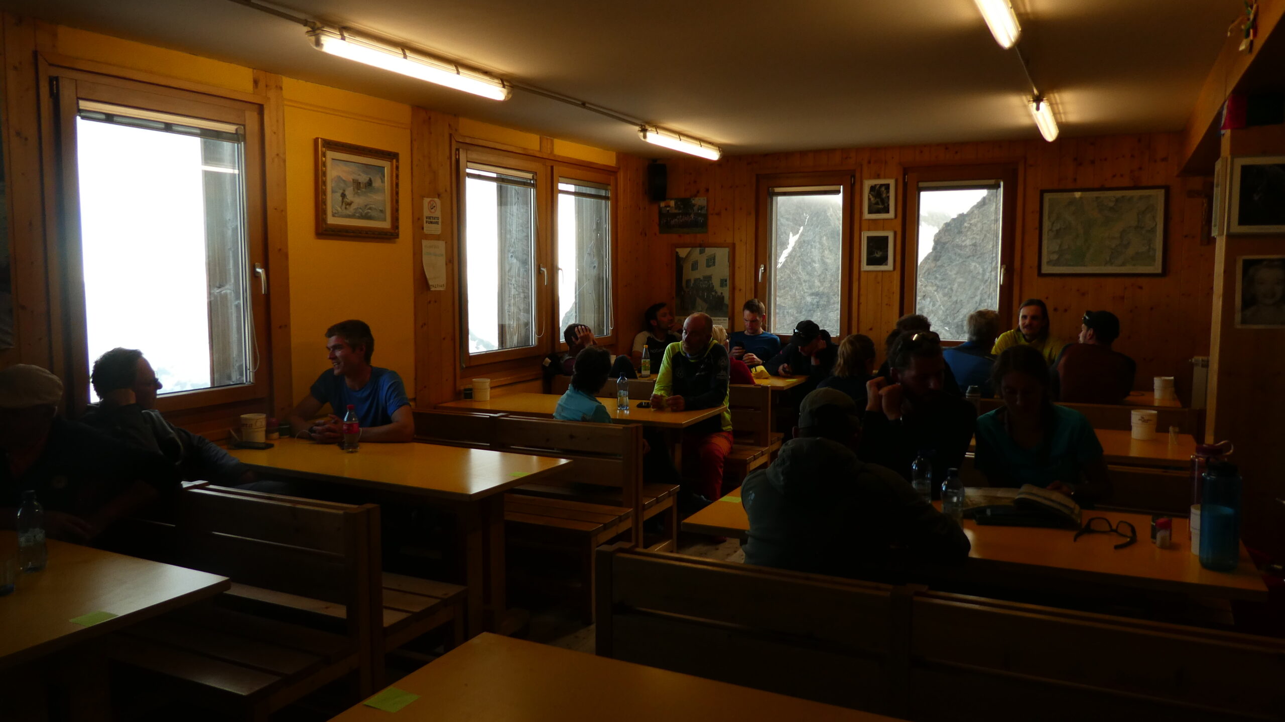 Parcheggiato dalla parte opposta rispetto alla “stazione” di partenza del calesse. Dall’Hotel Roseg in circa 2 h si arriva alla Chamanna Tscherva; ben gestita e personale disponibile. Eravamo circa in 40, quasi tutti con destinazione Biancograt (svizzeri, francesi, tedeschi e 4 italiani oltre a noi 4).