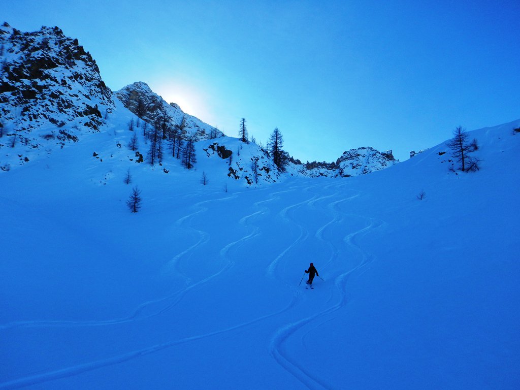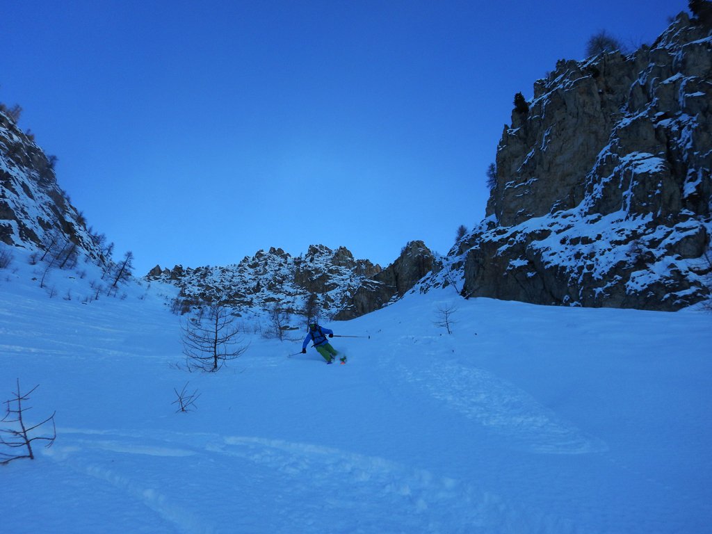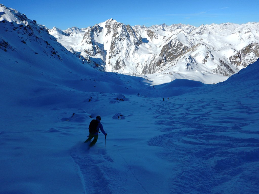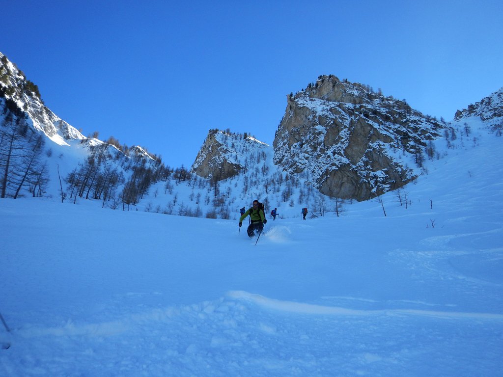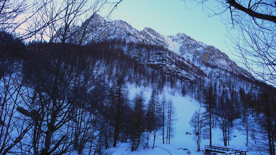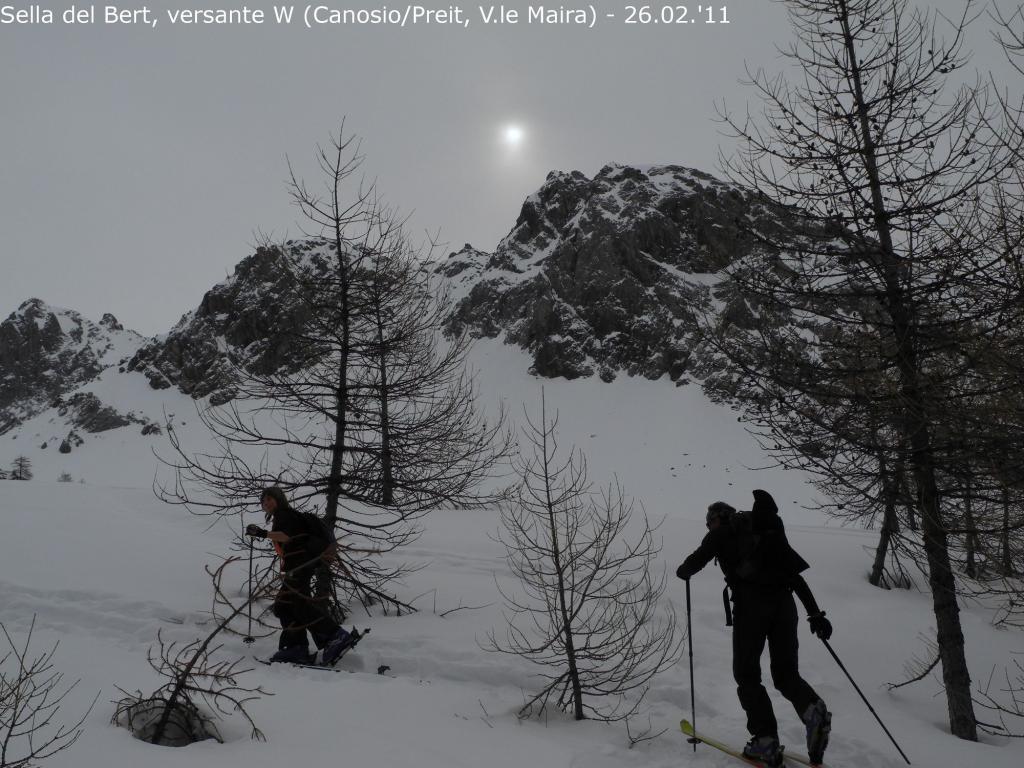 Da borgata Preit (parcheggio) si prosegue per la rotabile della Gardetta fino alle grange Selvest, 1661m. Dopo aver attraversato il rio su un ponticello si prosegue verso su una sterrata verso le grange Culausa, 1990m. dove si apre un larghissimo vallone che si affronta normalmente al centro passando sotto la severa parete nord di rocca la Meja e si arriva ad un colletto che si affaccia sul lago Nero. Mantenendo la sinistra ci si avvia verso il Bert dove ci si arriva per cresta dopo aver superato una selletta che dalla sponda occidentale del lago immette sulla stessa. L’imbocco del canale di discesa si trova leggermente prima della vetta. Inizialmente abbastanza stretto, tende ad allargarsi fino a confluire sulla stradina che dalle grange Selvest immette nel vallone della Valletta.