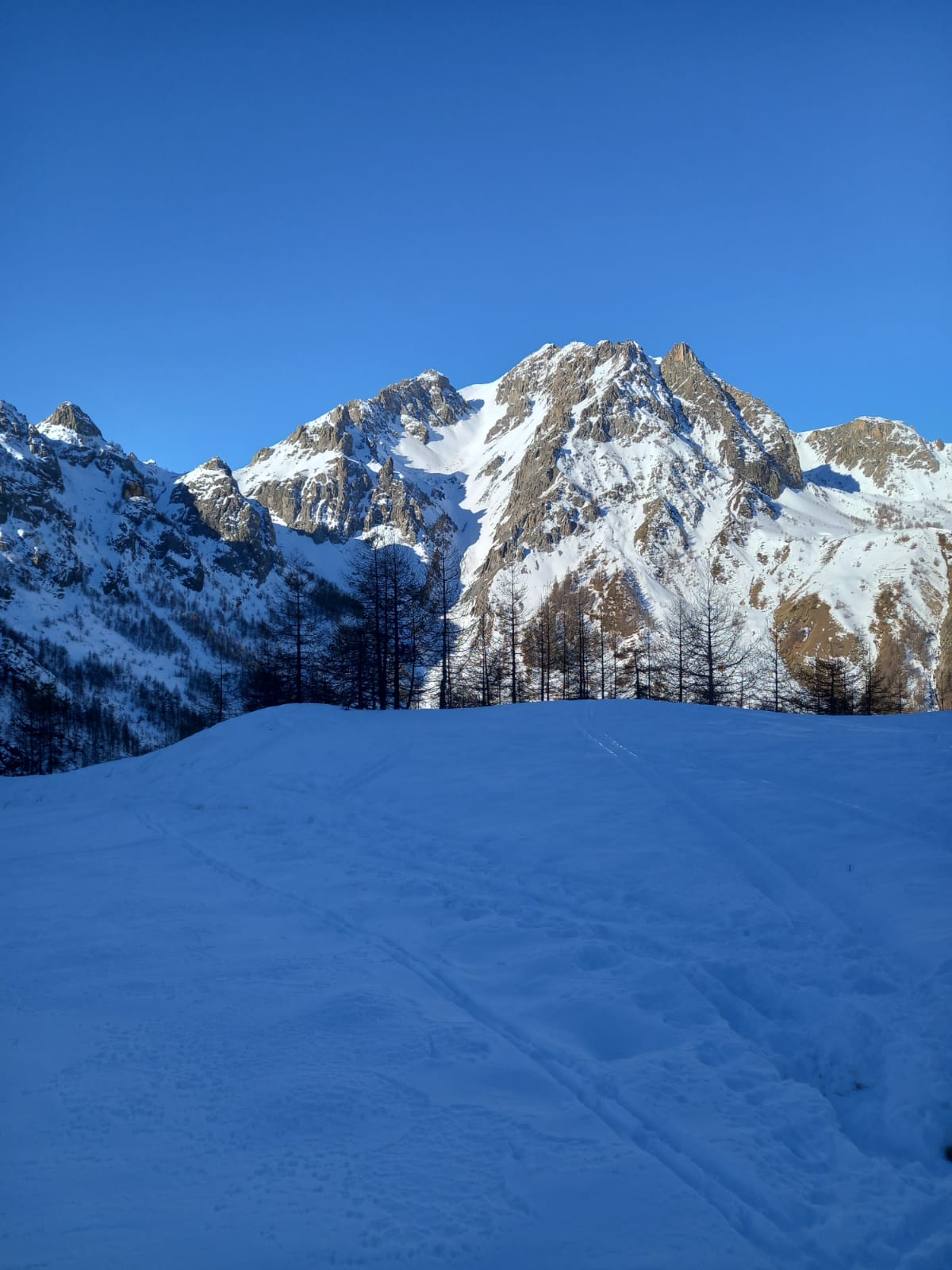 Tracciato ben battuto fino alla cima. Bella vista sulla nord di rocca la Meja, e ovviamente sul Re di pietra. Con Piero e Miki