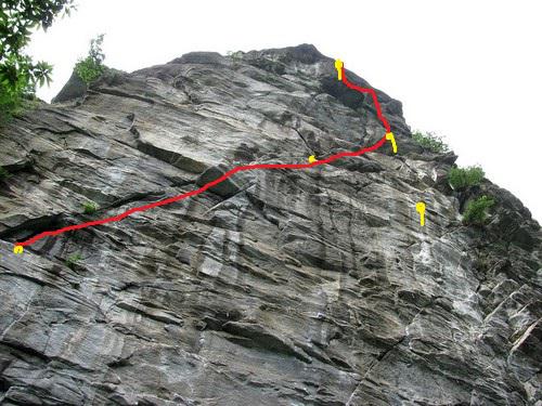 Roccia: gneiss buono sui primi due tiri, friabile sul terzo e quarto.