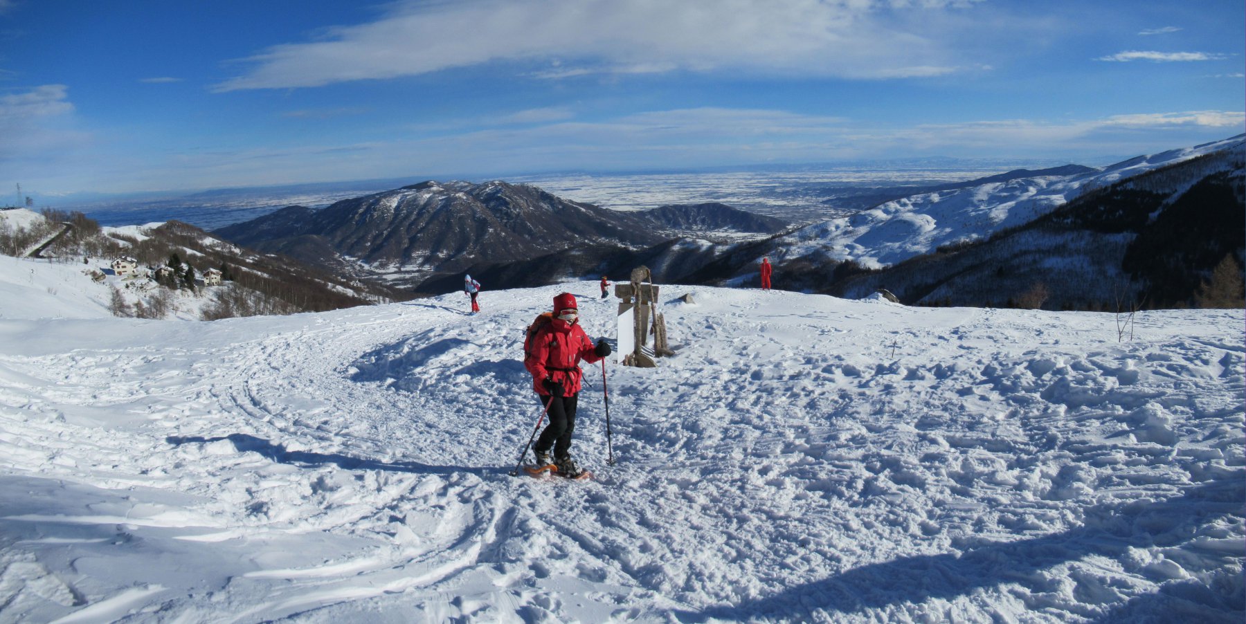 Bellissima giornata in compagnia dei nostri amici Sergio e Graziella. Tranquilla ciaspolata su sterrata fino al Rifugio Bertorello, adatta a tutti anche a famiglie con bambini piccoli. Visto che era presto abbiamo proseguito sempre su sterrata fino al Pian Munè dove il panorama diventa grandioso. Le previsioni prevedevano vento forte ma lo abbiamo trovato solo all’arrivo al pian Munè. Siamo poi scesi al rifugio per il pranzo: ottimo e abbondante. Molto gentile e simpatica la sig.ra Franca, consigliatissimo!! Meglio però prenotare. Tel. 3892119067 / 3487123363
