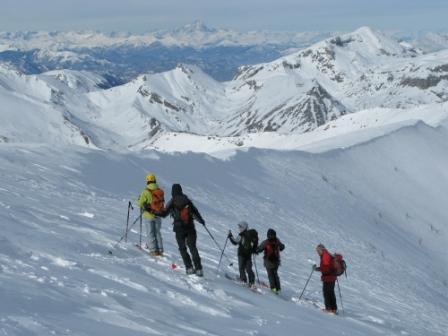 quasi nessuno oggi sulla Bertrand. Trovata ottima traccia nel bosco. Utili i rampant sotto la vetta, dove la neve è ventata ma sciabile. Nel bosco una splendida panna morbida fin poco sopra Upega, poi neve a cristalli quasi come sale grosso bagnato, ma sempre divertente.
