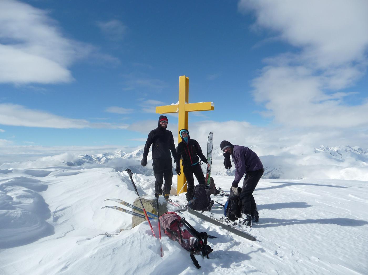 Partiti da Upega con circa 20cm di neve fresca e tutto da tracciare. Abbiamo puntato il sentiero estivo che sale alla Colla Rossa e lo abbiamo seguito fino ad incrociare la strada militare. Da qui abbiamo seguito la strada fino a due baite in legno dove abbiamo ripreso a salire nel bosco. All’uscita del bosco abbiamo puntato una selletta che conduce al pendio finale salito tenendosi vicini alla cresta. Discesa spaziale su 25-30 cm di polvere fino alla strada militare dove abbiamo ripellato in direzione Missun.