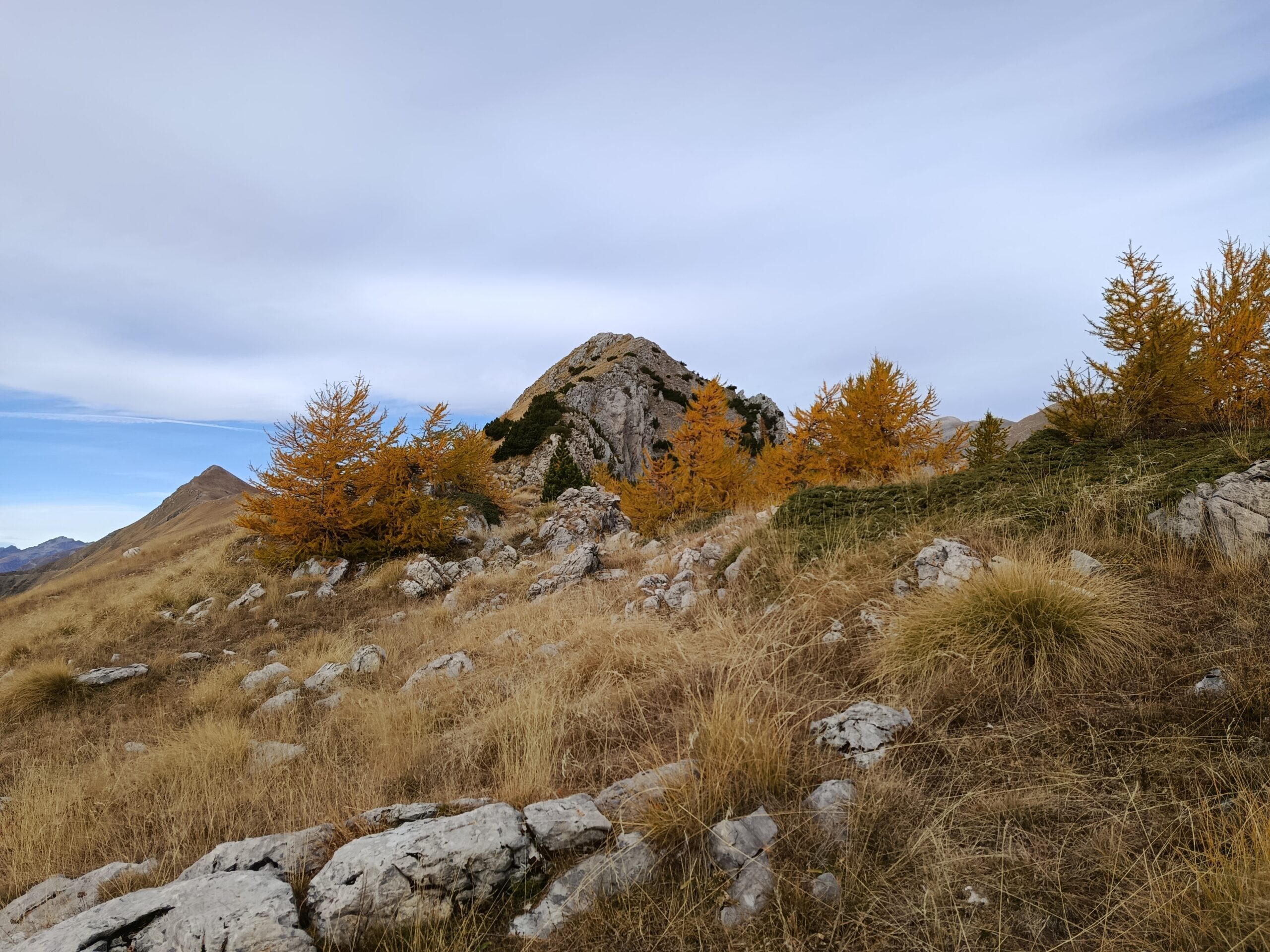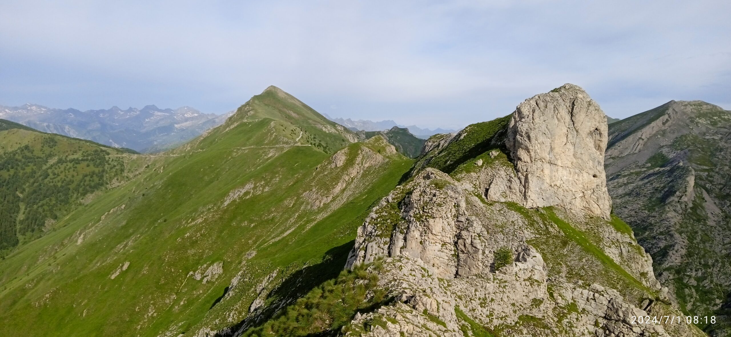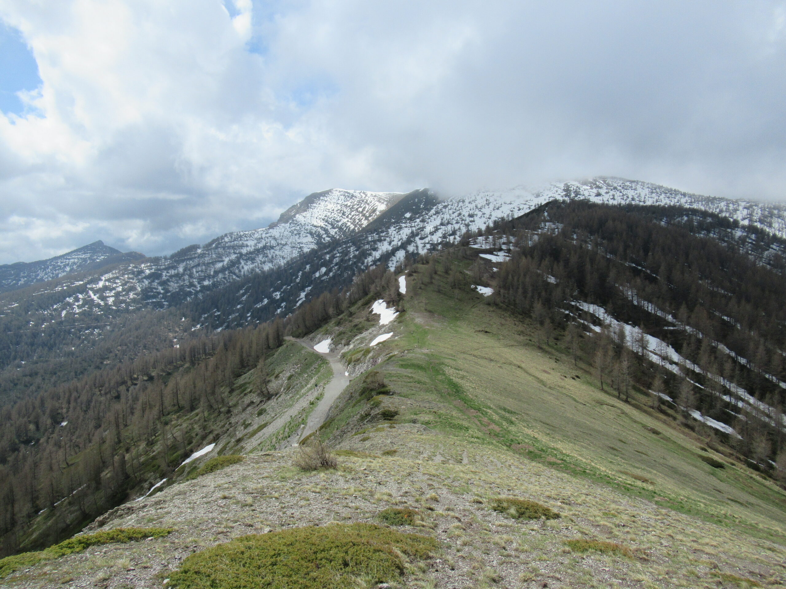 Si scende il ripido pendio sud fino al Colle Selle Vecchie (m.2097), dove si prende la bella mulattiera e la si segue per la panoramica dorsale fino ad arrivare in vetta al Monte Bertrand (m.2480).