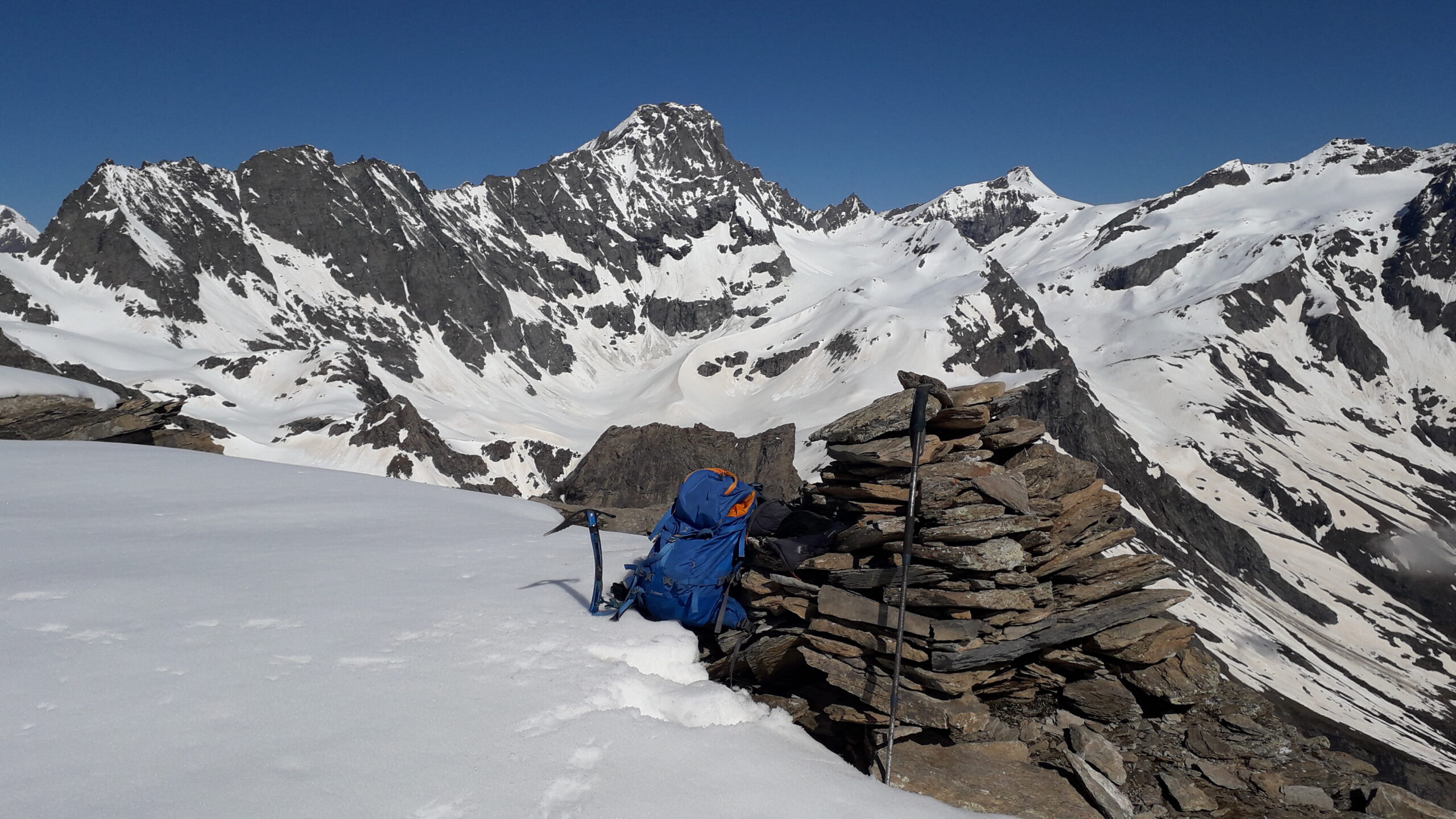 Ai tempi salita in sci dal vallone d’Arnas, e ricordo del passetto in roccia prima d’accedere alla vetta oggi per presenza di tanta neve reso piu’ facile che mai.