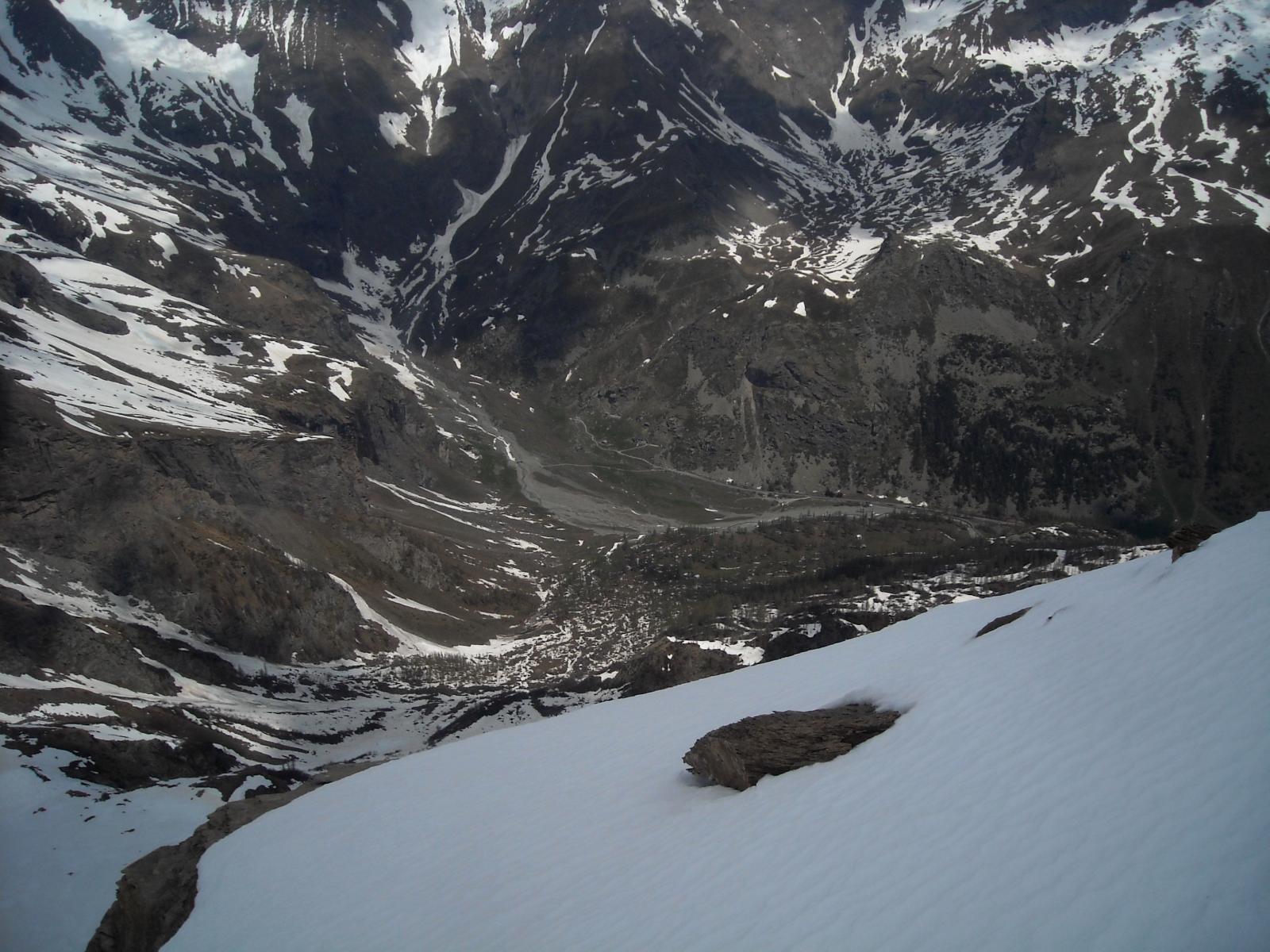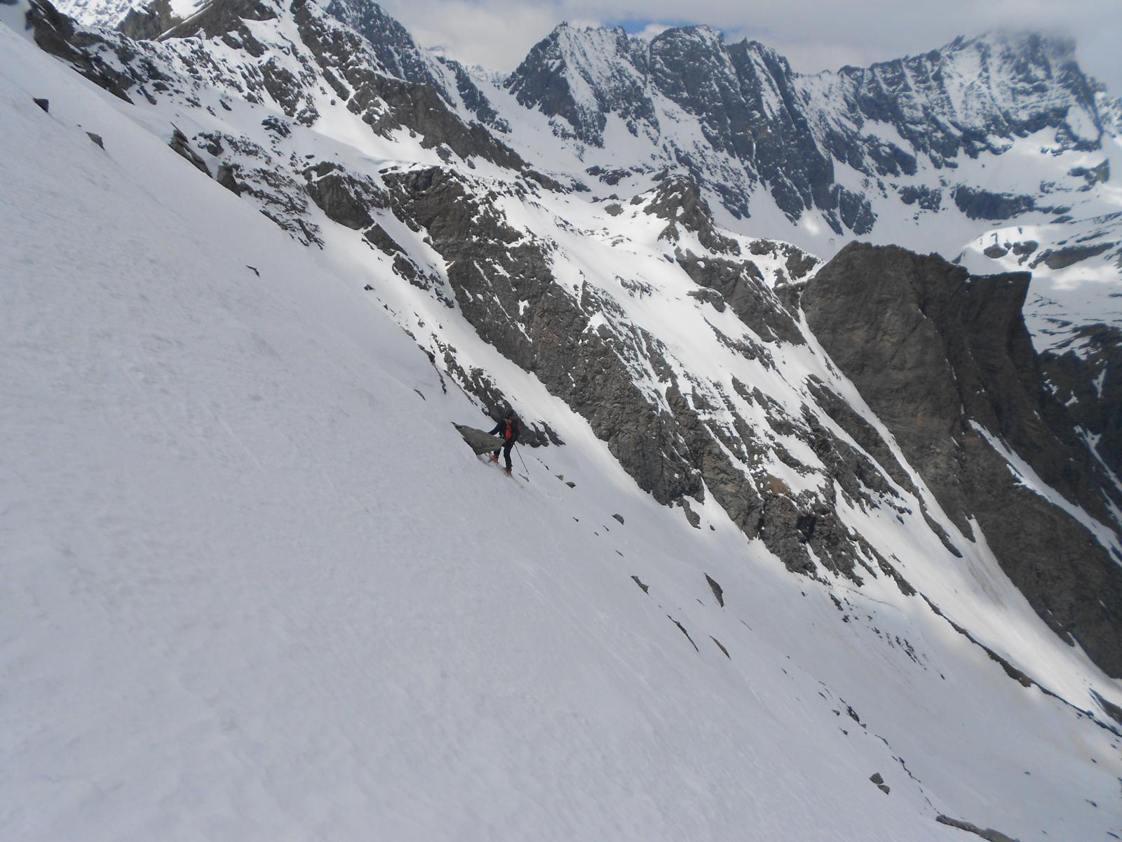 Pendio di oltre 400 metri con pendenze medie intorno ai 35°, con un centinaio di metri a 40°/45°.