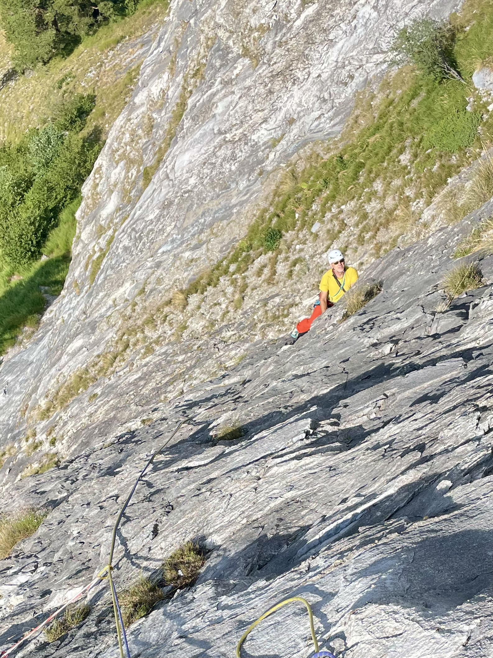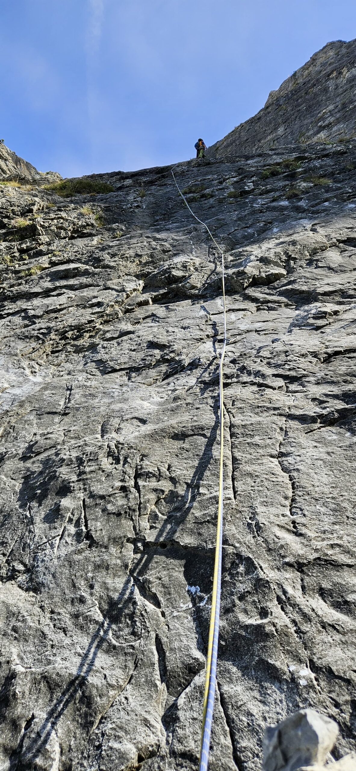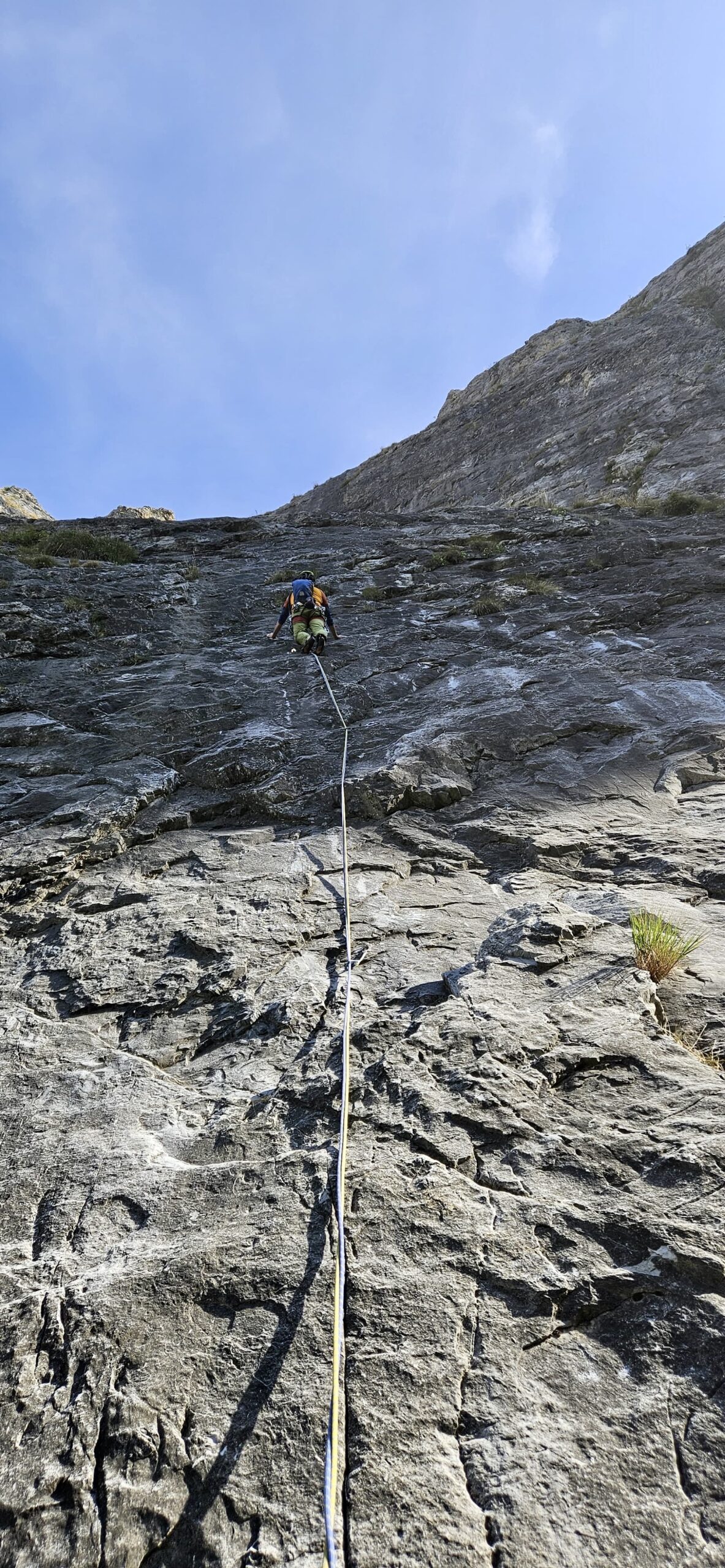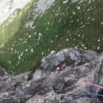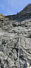 L2: 48m – sempre dritti per placca e poi lungo traverso ascendente verso destra – 6a.