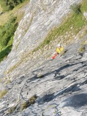 Via breve ma intensa, ideale per le giornate con meteo incerto. Gran lavoro di disgaggio e pulizia della parete dove si articola la via.