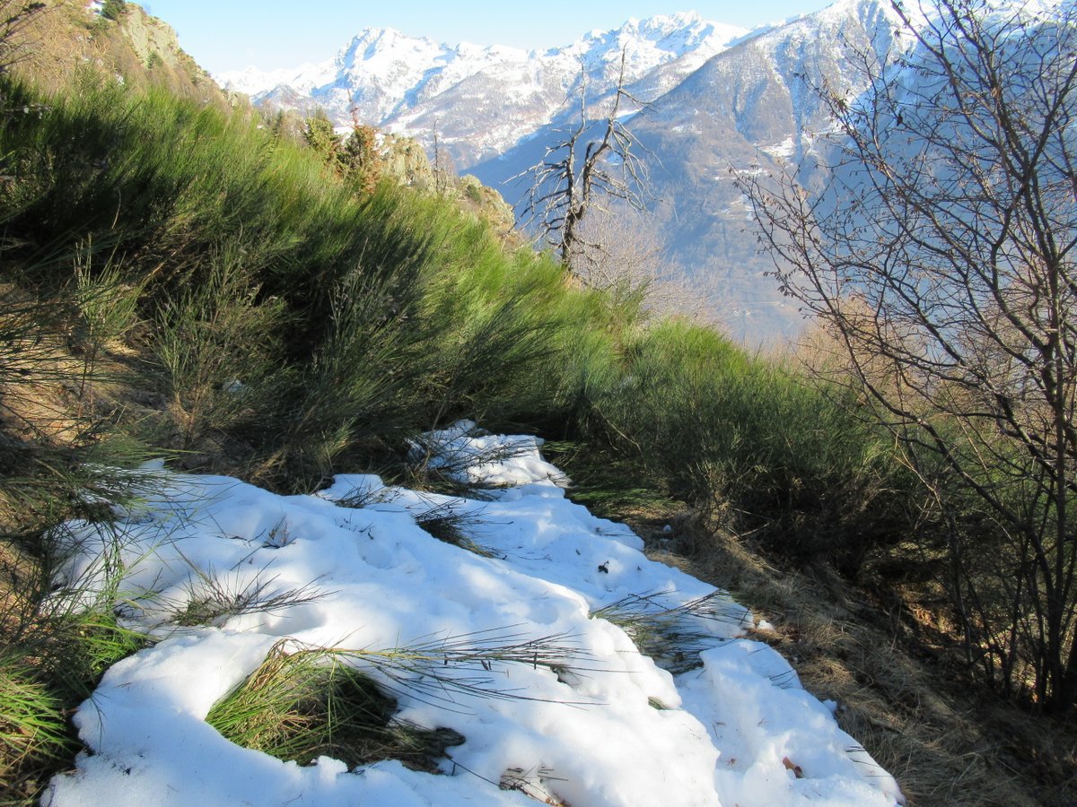 Partenza da Pont-Saint-Martin (q. 345) per percorrere un tratto di mulattiera che non conoscevo. Lasciato l’auto nel parcheggio che precede la svolta per la Valle di Gressoney. Da lì ci si dirige verso il centro, si supera il Ponte Romano e si prosegue sulla via centrale fino alla Piazza I maggio (parcheggio a pagamento nei feriali o 60 minuti nei festivi). Si svolta a dx sulla strada asfaltata per Perloz, fatti pochi passi a dx si trova la mulattiera/sentiero n.1 (paline), che poi è sempre ben indicato (frecce a terra “Tor” “Crabun”) ed è in ottime condizioni. A Perloz strada asfaltata fino a Colleré (due o tre tagli possibili, su sentiero), abbastanza breve e veloce. Poi salita come da itinerario senza le varianti di discesa per Breil e Ban. Il sentiero da Colleré è in condizioni molto peggiori rispetto a come lo ricordavo, a parte le solite foglie stagionali, dai 1200 in su molti tratti sono invasi dai cespugli di ginestre ad altezza uomo, diventa facile perderlo, cercare sempre le frecce gialle o munirsi di traccia GPS. In queste condizioni la difficoltà è EE. C’è un po’ di neve a chiazze dai 1500, oggi crostosa ma non ghiacciata, qualche piccola colatina di ghiaccio ben individuabile, per il resto tutto molto asciutto.