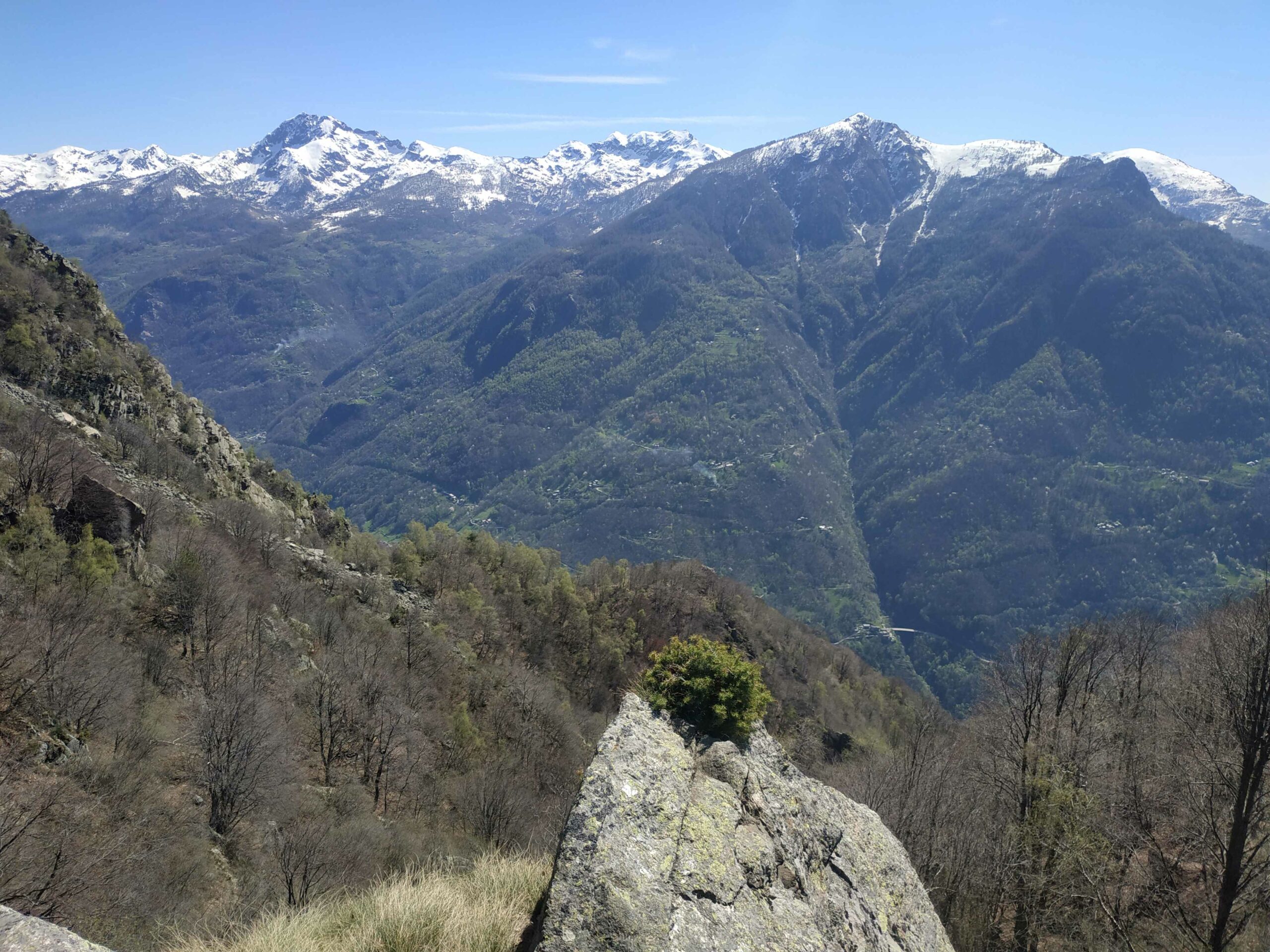 Si alternano tratti puliti e scorrevoli ad altri meno agibili. In basso la fanno da padrone le foglie molto spesse che ricoprono tratti lisci e nella parte alta la vegetazione che invade il sentiero con cespugli in parte anche spinosi e qualche albero di traverso. Un tratto della stupenda mulattiera tra Breil e Chisalle è gravemente danneggiato da una frana in un punto che potrebbe anche rendersi pericoloso, con vari massi che incombono poco più in alto. Nella parte alta due piccoli nevai da valanga lambiscono il sentiero. Poco sotto la cima è presente acqua di sorgente. Baite e piccole borgate diroccate in posizioni incredibili. Temperature quasi estive ma gli alberi non sono ancora pieni di foglie per cui i punti panoramici abbondano. Nessuno in giro.