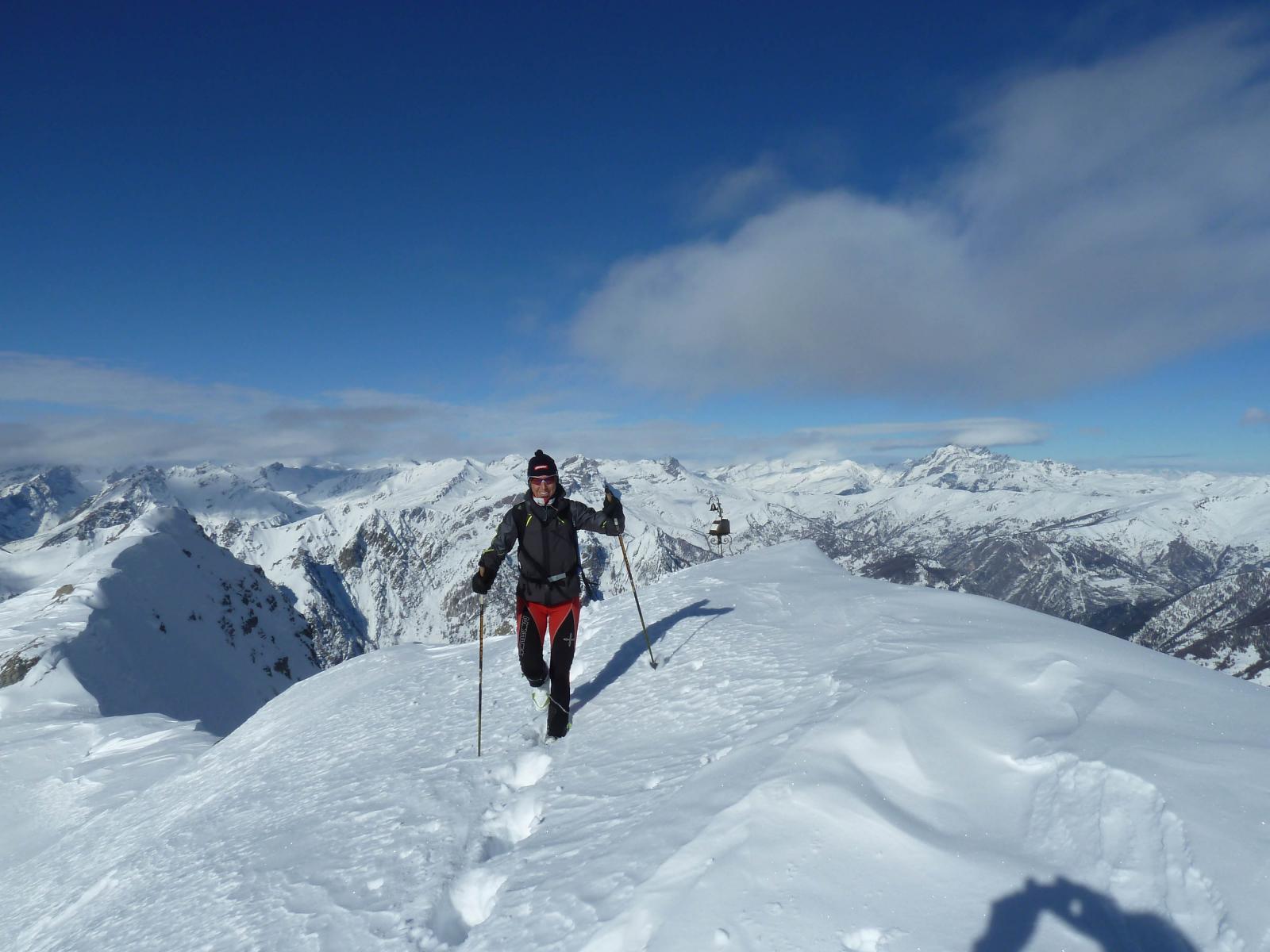 Cielo nuvoloso alla partenza ma nel corso della mattinata il tempo è migliorato permettendoci di portare a termine la nostra gita con l’arrivo sulla vetta vera e propria(m.2744). Erano d’obbligo 2 rintocchi di campana posta sulla cima per salutare il nuovo anno. Discesa non proprio esaltante visto che il vento nella parte alta ha lavorato parecchio. Dal colle in giù ci siamo tenuti a ridosso delle pendici occidentali della Bianca dove la neve era ventata ma morbida e ne è ancora uscita una discreta discesa. Da dove inizia la vegetazione neve ancora farinosa ma leggermente più pesante dei giorni scorsi.