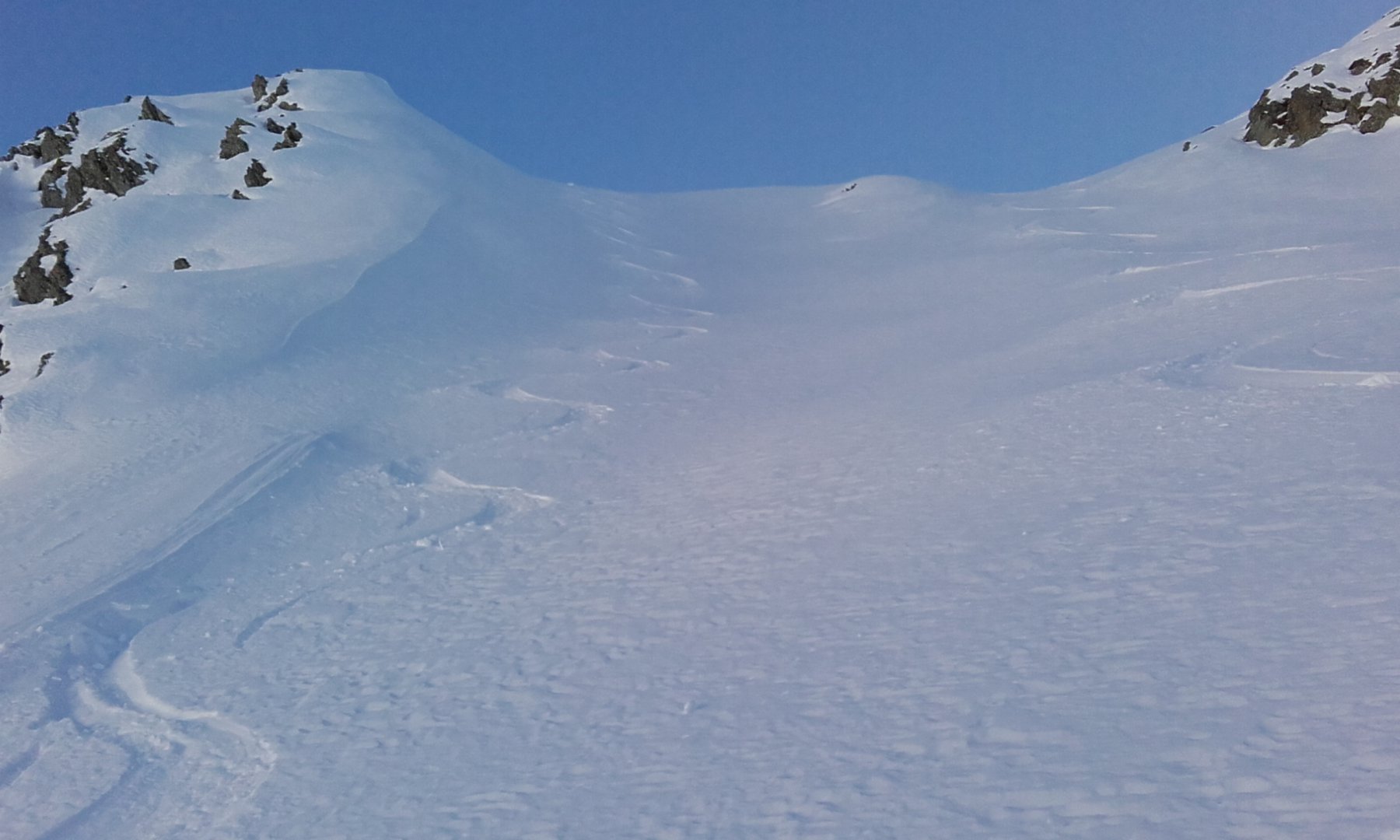 Oggi saliti per la bianca tenendoci a SX dopo la grangia valletta così siamo saliti al sole evitando freezer del sentiero estivo. Al colletto abbiamo piegato a DX e su cresta siamo arrivati alla seconda punta. Siamo poi, dopo godurioso solarium a SUD, siamo scesi diretti nei bei canali all’ombra trovando tutto vergine e superpowder per chiudere in super bellezza. Poi stradina fino al preit.