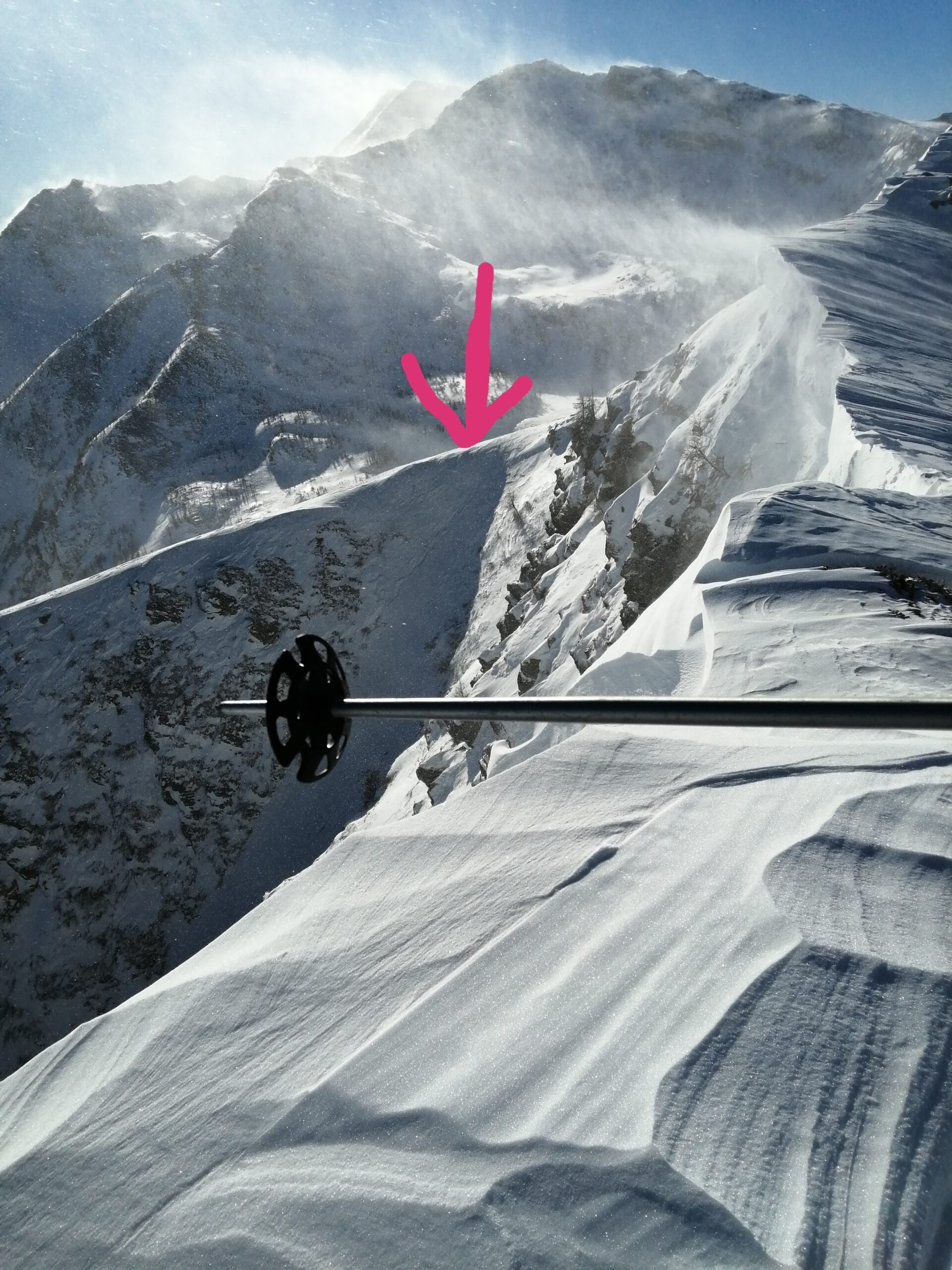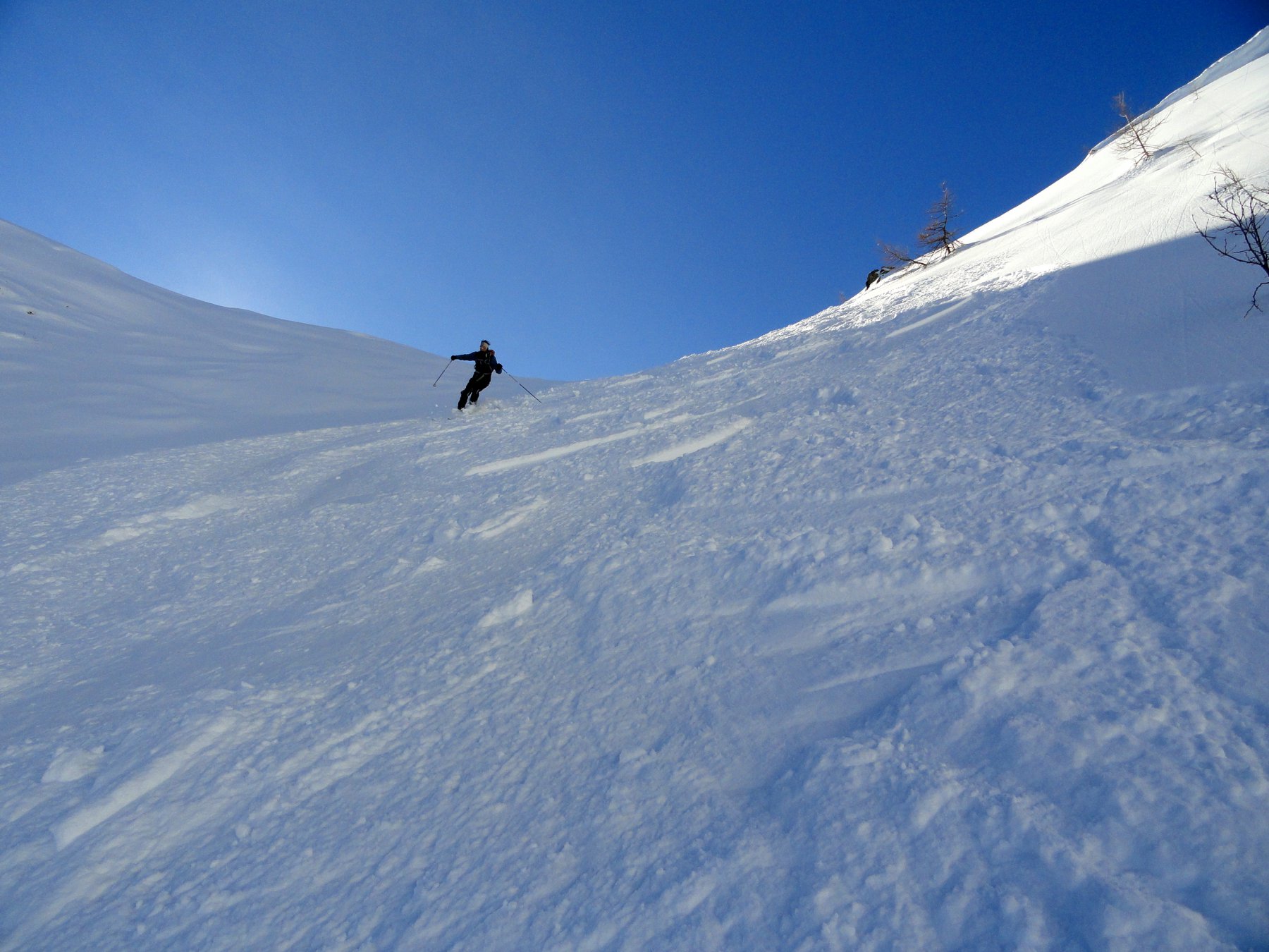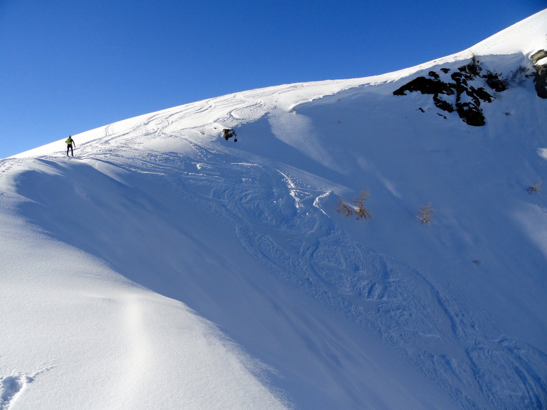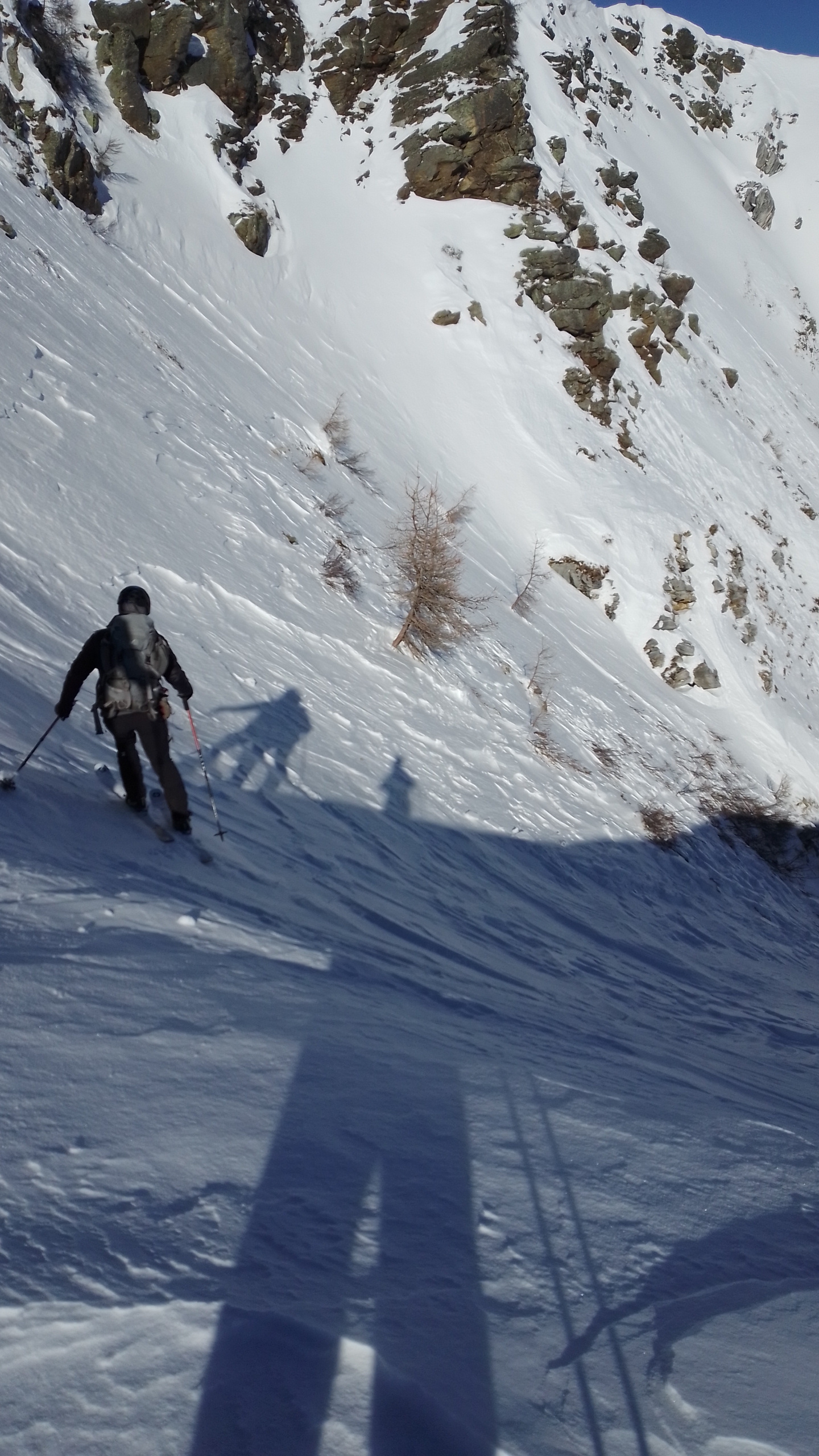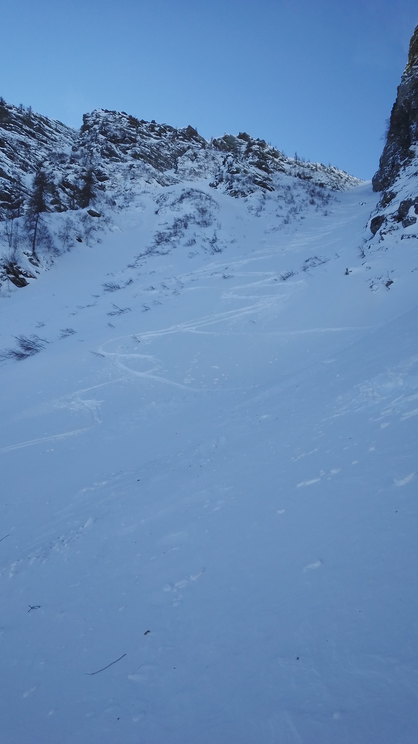 Perticolare attenzione in quanto scarica parecchio dai pendii laterali e non ci sono vie di fuga comode.