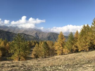 Incamminati sul sentiero ben segnalato che parte all’interno della Borgata Indiritti e che incrocia, in alcuni punti, la sterrata che sale verso il Colletto Sellar. Il sentiero, più diretto, attraversa un bellissimo lariceto che in questa stagione mette in scena il suo spettacolo migliore con le meravigliose tinte che colorano gli alberi. Lungo il percorso pannelli esplicativi e ricoveri abbandonati a memoria del fiorente passato estrattivo della Val Germanasca.