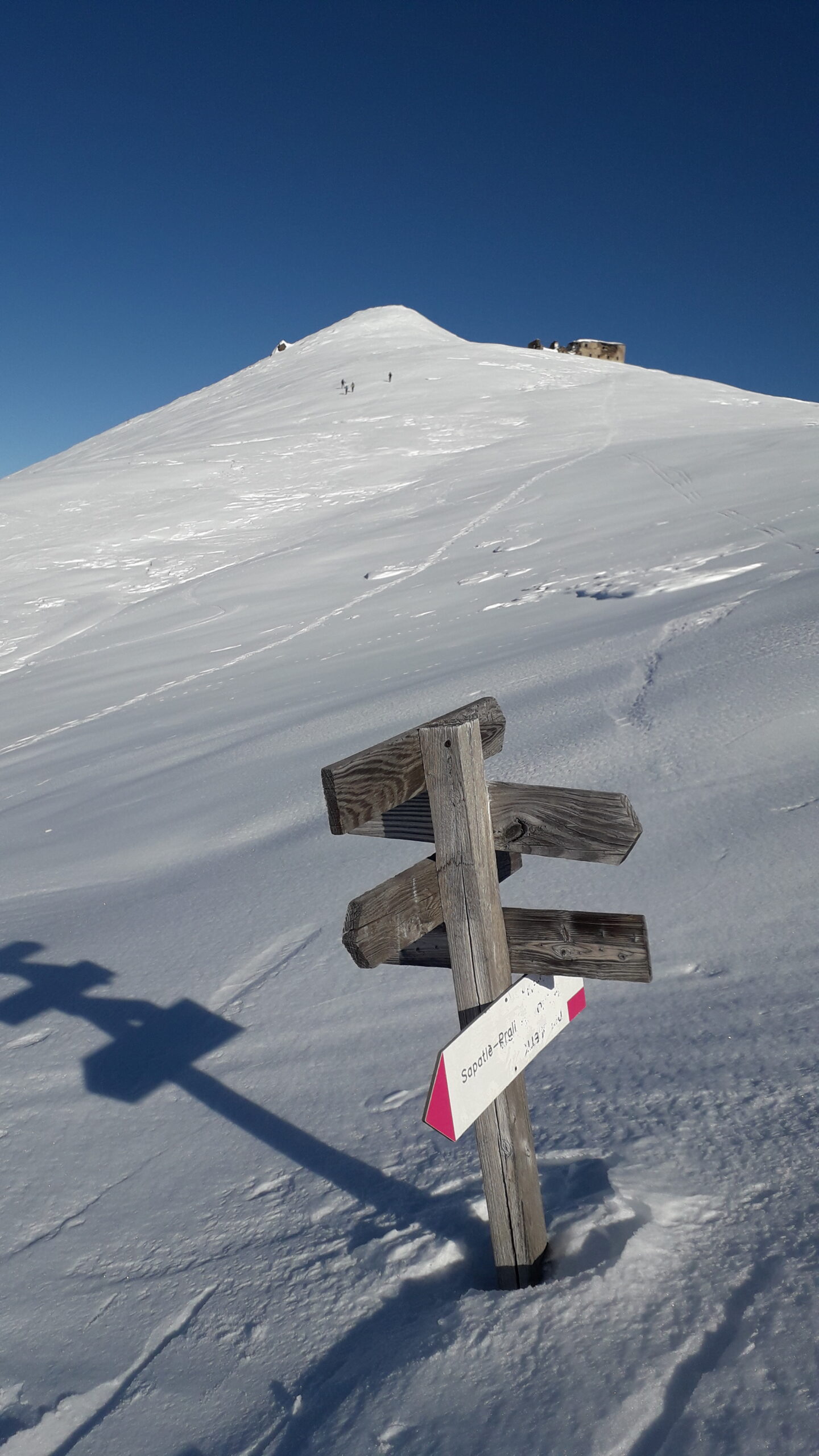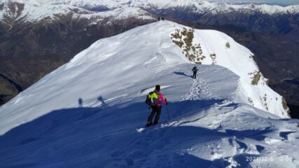 Gita nel complesso divertente, faticosa il giusto, grazie alla traccia esistente dalla partenza fino in cima raggiunta con un continuo lungo ascendente da dx a sx, poiche’ la vetta e’ di parecchio spostata piu’ a nord rispetto al punto di partenza.