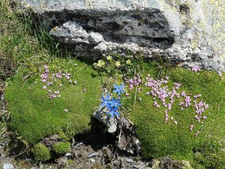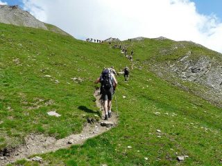 salita al lago blu e colle longet, discesa dal colle s.veran,nella parte alta si pesta ancora parecchia neve,la parte finale alla cima pulita da neve.oltre la vista spettacolare il percorso si presenta come un bel giardino fiorito……….