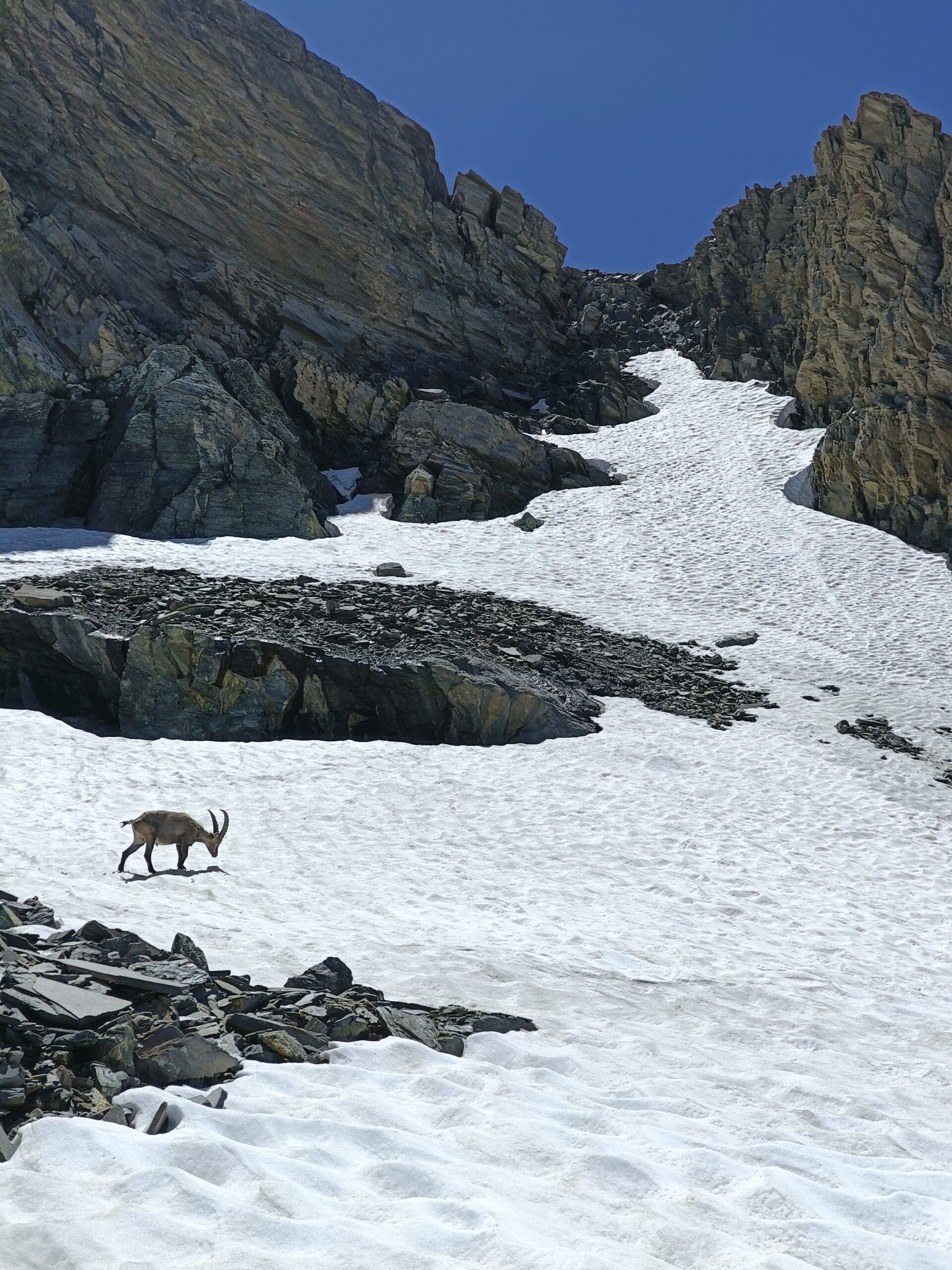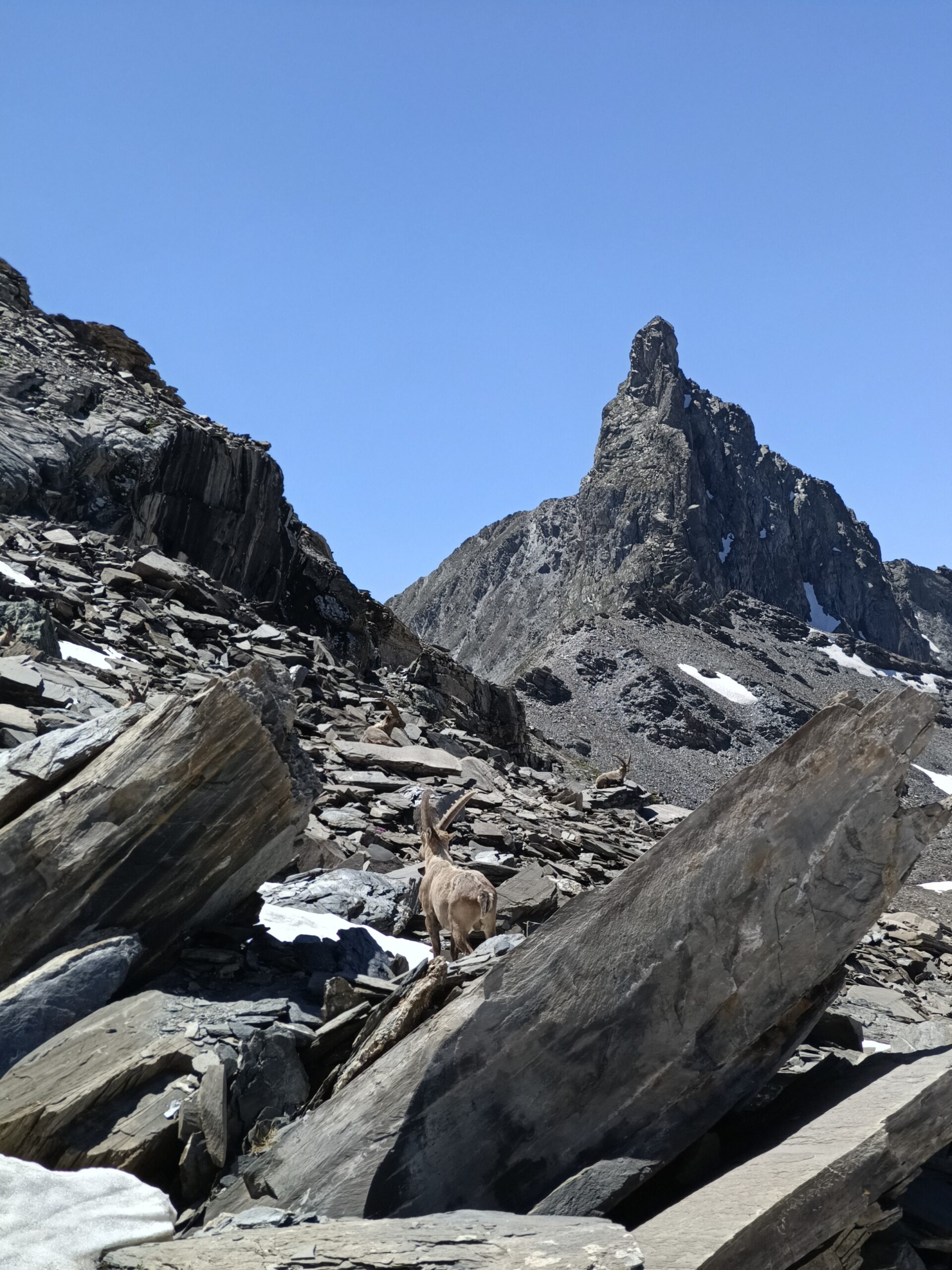 Quasi al lago inferiore (circa 100 m di perdita di quota) puntare a sinistra e, su pietraia, raggiungere il sentiero segnato di giallo che sale dal Refuge de la Blanche verso il Col Biancetta 2901 m.