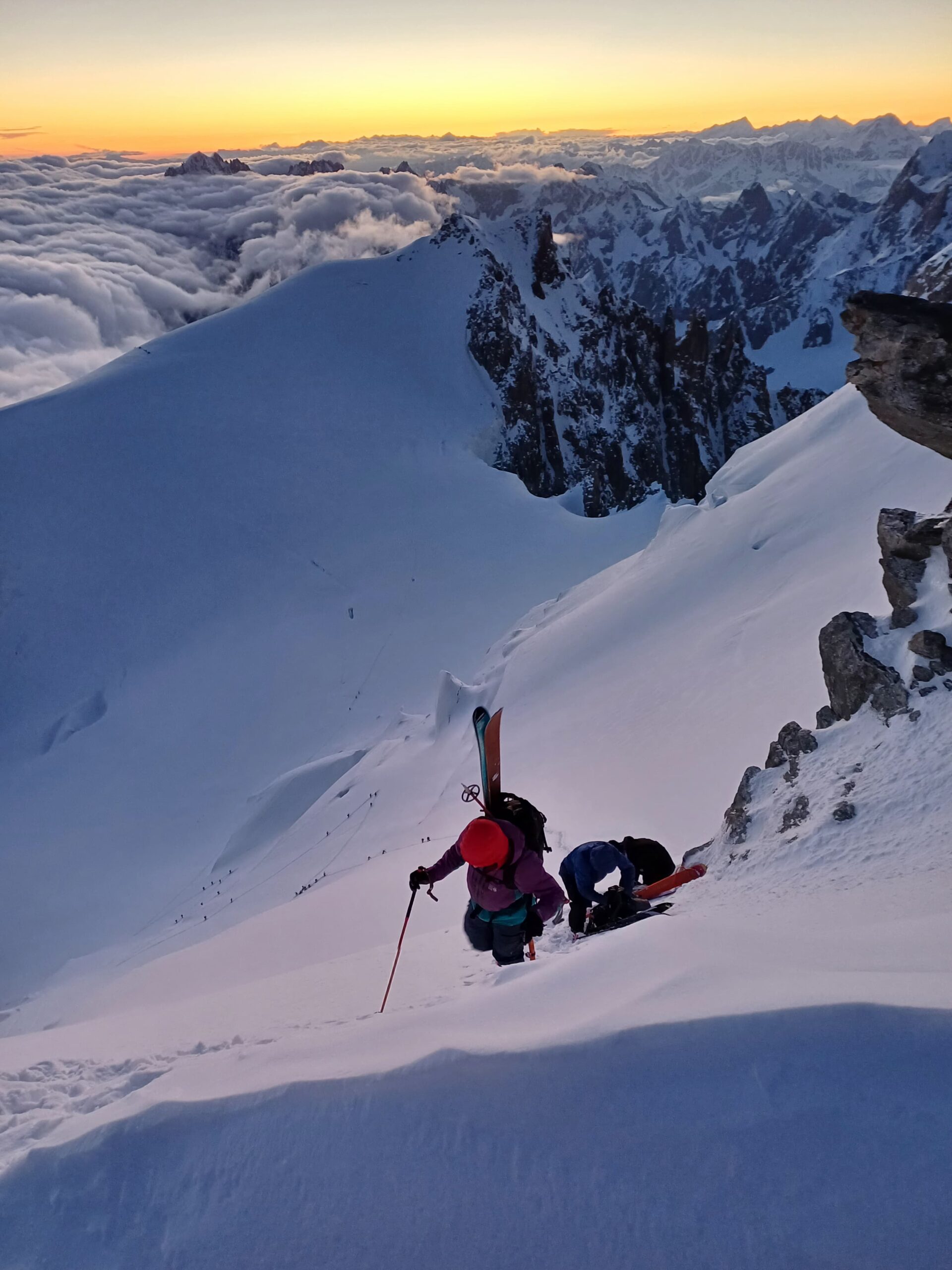 Merita inoltre per la bellezza del percorso articolato su 3 pareti di oltre 4000 m.: Tacul, Maudit e Mont Blanc.