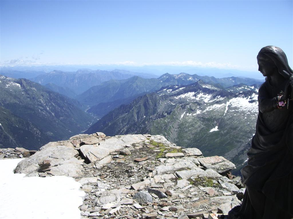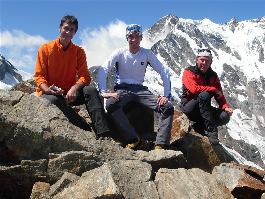 Partenza dal piazzale della seggiovia di Pecetto alle 6 in compagnia di Paolino e Davide,salita lunga e faticosa per il dislivello.Dalla cima si realizza effettivamente l’imponenza della est del rosa…eravamo a 3200mt,sotto un salto fino ai prati della Pedriola(2000mt)e davanti a noi ancora 1300 metri di parete,ininterrottamente devastata da scariche di sassi e ghiaccio.Rientro attraverso il Pizzo Nero e Rosareccio