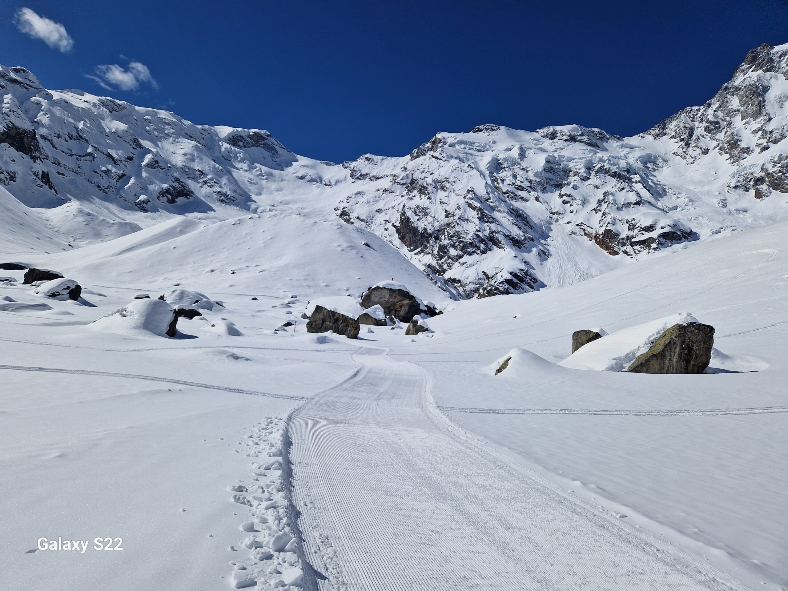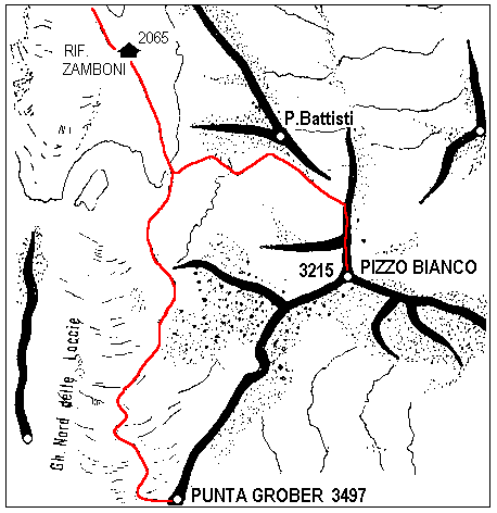 Arrivati all’ultima stazione della seggiovia si prosegue per il sentiero (ben battuto) che porta al rifugio Zamboni. Per arrivare al rifugio bisogna attraversare il ghiacciaio (sentiero ben segnato).