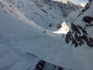 Bisogna percorrere tutto questo canale per arrivare in cima! State attenti, il canale è oggetto di frequenti slavine in inverno.