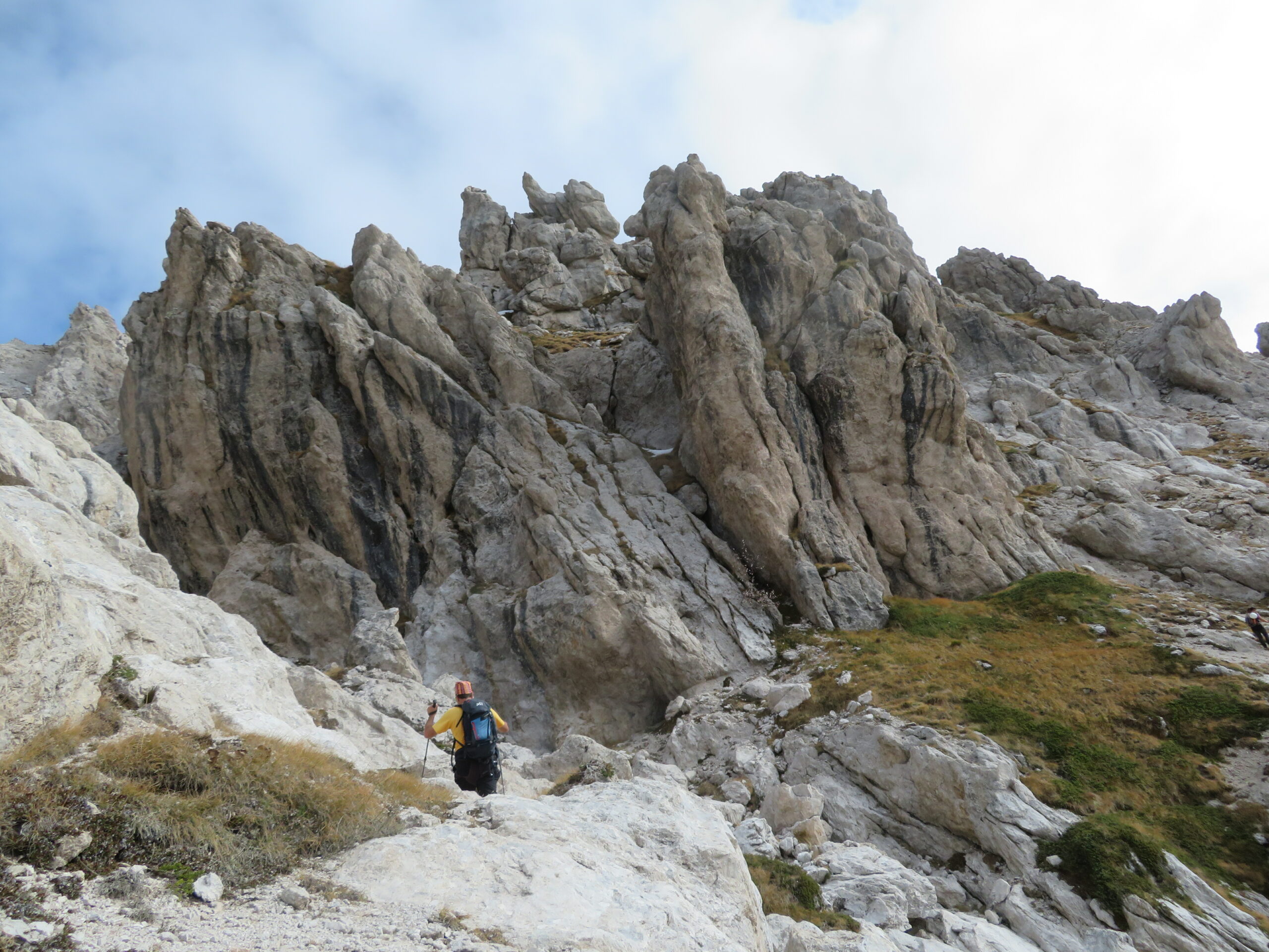 Da qui risulta sconsigliabile la salita in vetta dal versante nord, in quanto la roccia è friabilissima e le rampette sono molto esposte.
