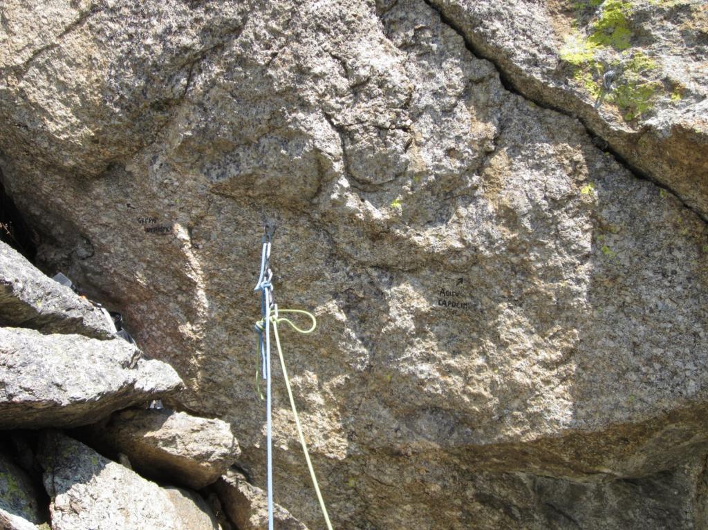 Ho dato una mano a block65 nei lavori di sistemazione della via “gruppo utopistico”. Siamo saliti a sinistra lungo la via “prima linea”, dopo due tiri ci siamo spostati un leggermente a destra dove abbiamo eliminato la pianta ormai insicura mettendo una sosta su roccia. Block65 ha anche scritto su roccia le possibilità che ci sono di salita: adieu capucin a destra e gruppo utopistico a sinistra. Calando abbiamo anche eliminato i piccoli cespugli cresciuti negli anni. Ora la via è OK in un ambiente molto bello dove, specie in autunno, c’è un clima veramente ottimale per arrampicare