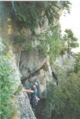 Via su ottima roccia, ben spittata su fessure, placche e un camino non banale.