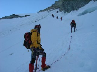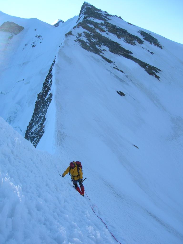 veramente un bel 4000. ottima accoglienza al rif .pasto mbuono e abbondante , comprensivo di aperitivo .bella struttura calda e accogliente bagni doc.6 ore x la salita e5 per discesa . grintosa cordata composta da me ,enzo e bruno , dario, enrico e silvia ,. capitanati a breve distanza (prima di noi)da marco mire e renzo .tutti quanti in cima ad uno dei particolari 4000 ,notare che le condizioni attuali erano x la cresta non banali , x proteggersi era salutare eseguire progressione uno sul lato chamonix e due sul lato italiano in corda tesa cosi che si evitasse degli spiacevoli incovenienti ,altre 2 cordate dei nostri son saliti al dom . tempo splendido .un grazie a tutti i partecipanti x la bella riuscita gita che ha un po di piu che del sociale . non sottovalutare la descrizione AD.,e occhio al ghiacciaio del dom che e veramente crepacciato , buone salite a tutti ,
