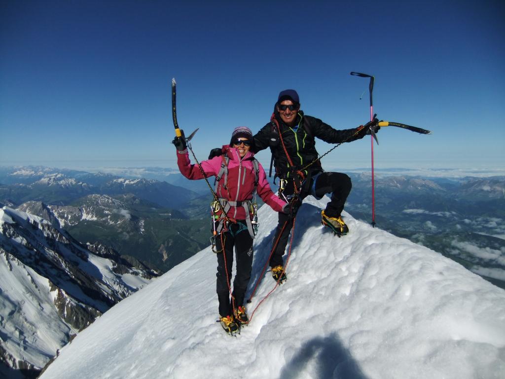numerosi report davano la Bionnassay in ottime condizioni; impossibile non approfittarne. L’avvicinamento al Gonella e’ lungo, ma l’ottima gestione di Nadia ti fa subito dimenticare la fatica….partiti alle 4,00 dal rifugio, il ghiacciaio e’ in ottime condizioni, saliti al Piton e ridiscesi su facile e breve cresta fino al colle di Bionnassay, da li inizia la bellissima cresta est tutta in neve, ben tracciata, aerea e affilata. Al ritorno la neve ha tenuto abbastanza tanto da permetterci un rapido rientro al rifugio, poi discesa interminabile fino alla macchina.Con i nostri immancabili soci Anna e Carlo