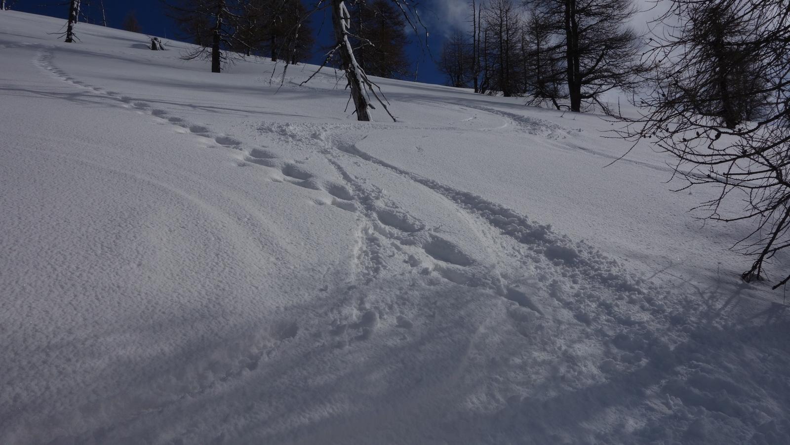 Al mattino tempo molto bello 1 ° dal posteggio . Traccia di ciaspole/sci sino a 1800 mt poi 3/ 5 cm farina intonsa su fondo duro . Ultimi metri neve ventata e disomogenea .