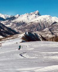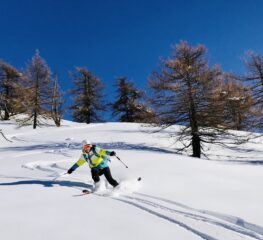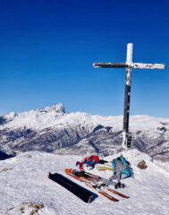 Croste da vento e sastrugi poco sotto la vetta, poi polvere pesante fino al colle, dopodiché neve bagnata fino alla macchina. Se non fosse stato per il rialzo termico, sarebbe stata una gita da 5 stelle.