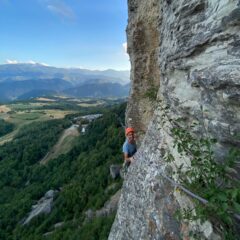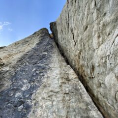 bella via su difficoltà omogenee che risale la splendida parete est sfruttando fessure ingaggiose e placche delicate e di tecnica da pelo sullo stomaco. divertimento assicurato. occorre padronanza del 6b.