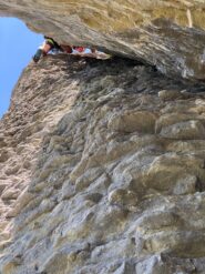 - L4: variante “quelli della notte” placca strapiombante (leggermente) con buchi e tacche ruvide roccia stupenda! Spittata lunga in alto devo scalarlo nn si azzera 6b+/6c
