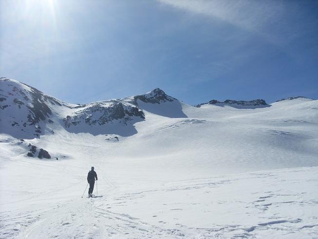 Domenica partenza comoda dal rifugio,meta Becca della Traversiere,ambiente glaciale e neve di tutti i tipi dalla