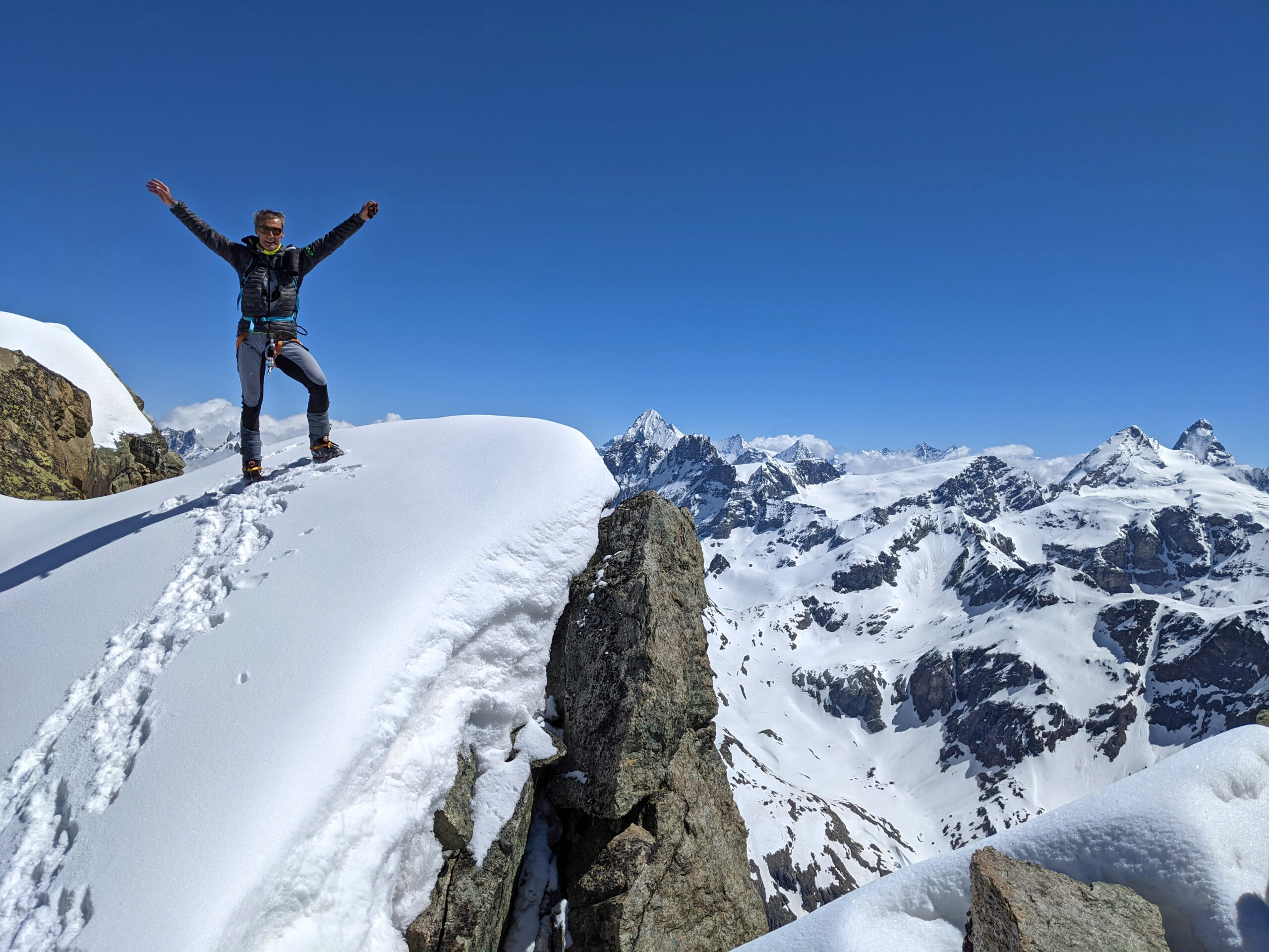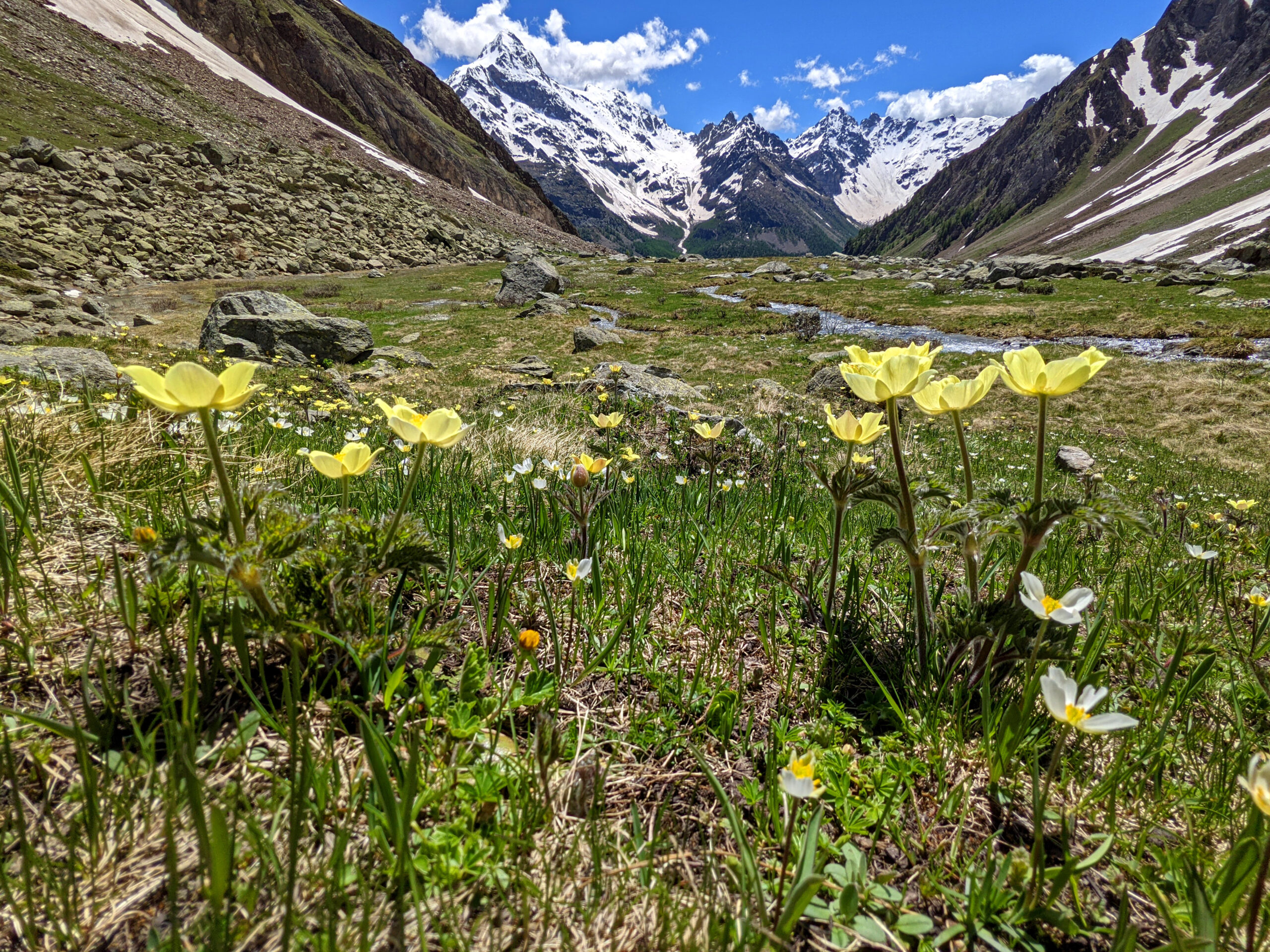 Valpelline oggi nel suo massimo splendore con ancora molta neve per il periodo e favolosi contrasti con i prati fioriti. La parte sciistica ci ha regalato una sciata fantastica su firn liscio perfetto fino a circa 2700m, sotto ancora bello, ma più lavorato superficialmente. Ancora molta neve per belle gite se il clima tiene, oggi zero termico basso al mattino (brina al parcheggio).