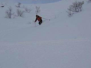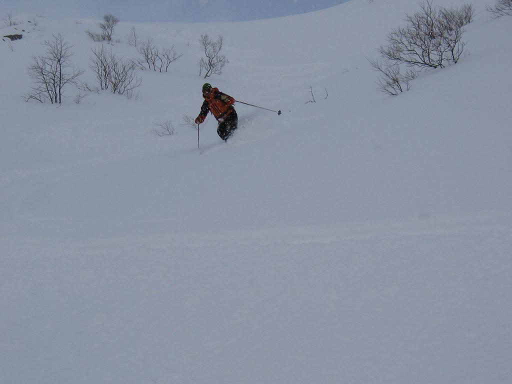In compagnia di Massi, abbiamo apprezzato a tal punto che giunti al lago, abbiamo rimesso le pelli per risalire sino al colle tra il Blatinden a dx ed il Tuva (477 mt a sx), quest’ultimo facilmente raggiungibile dal colle.