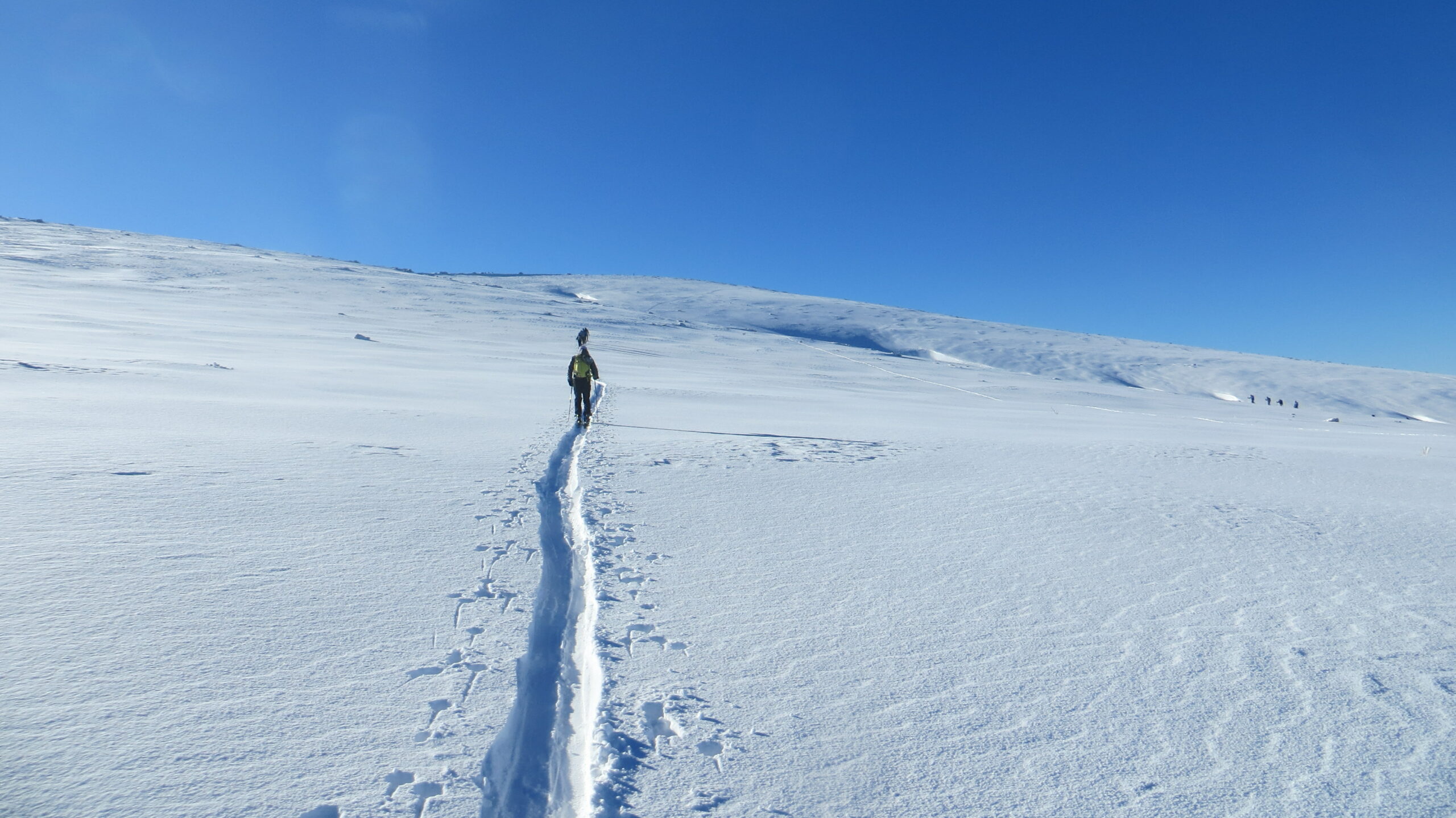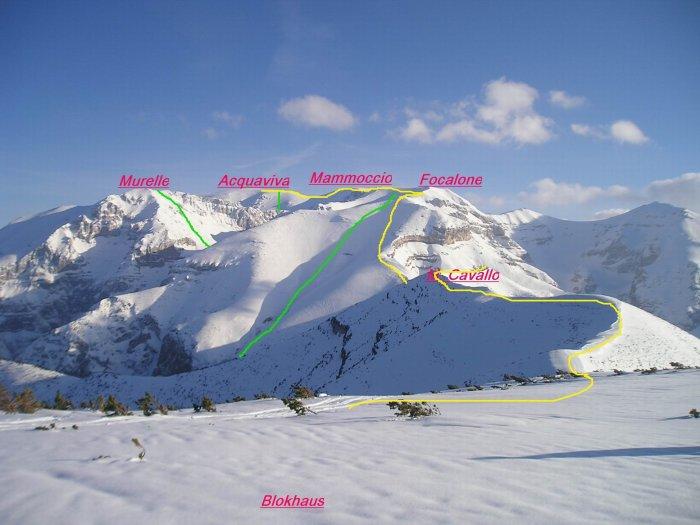 Si risale lateralmente alle piste della Majelletta o a sx fino alle antenne proseguendo poi in direzione sud/ovest lungo la larga dorsale, oppure a dx delle piste con un lungo traverso obliquo in direzione Sud.