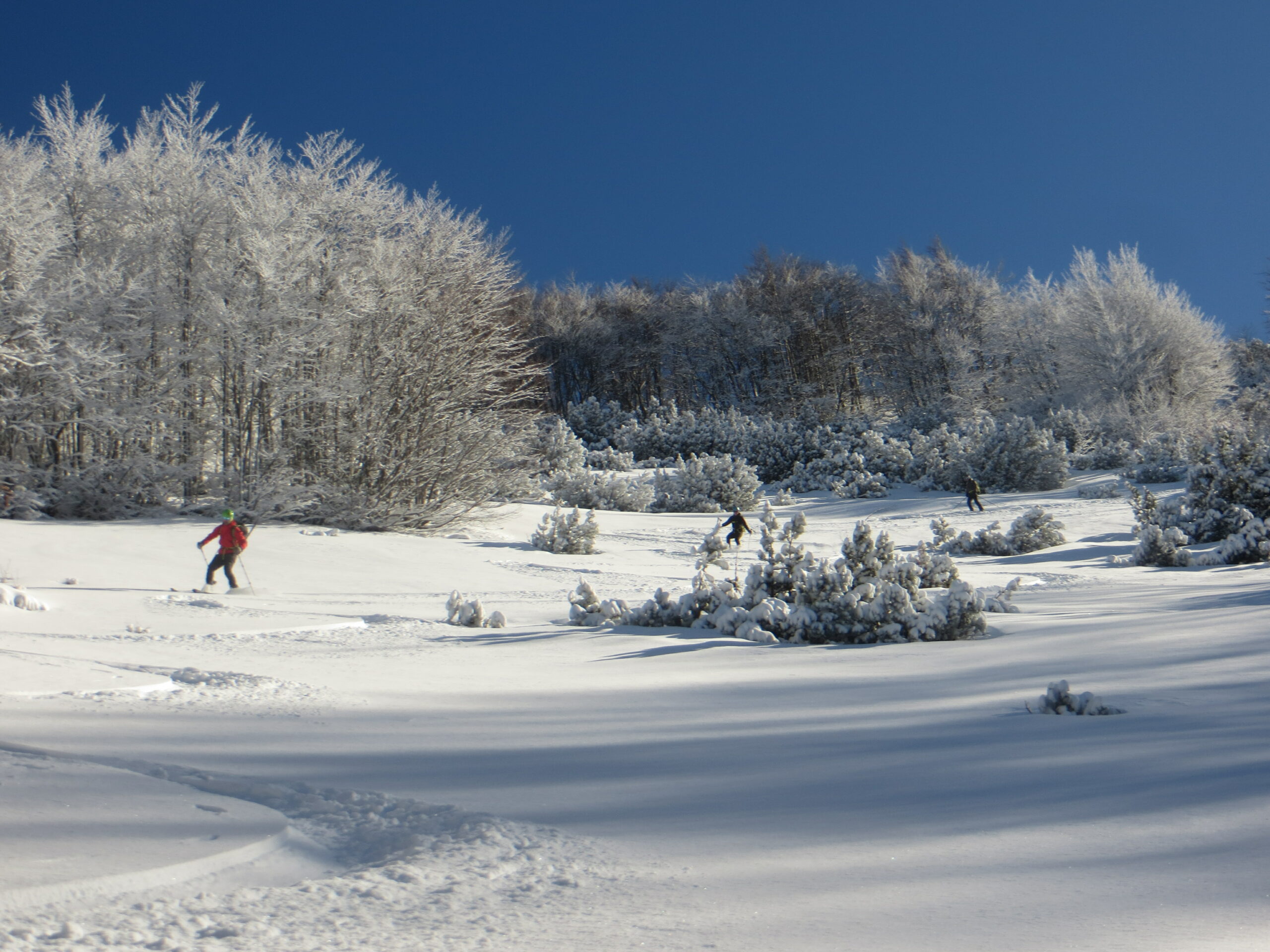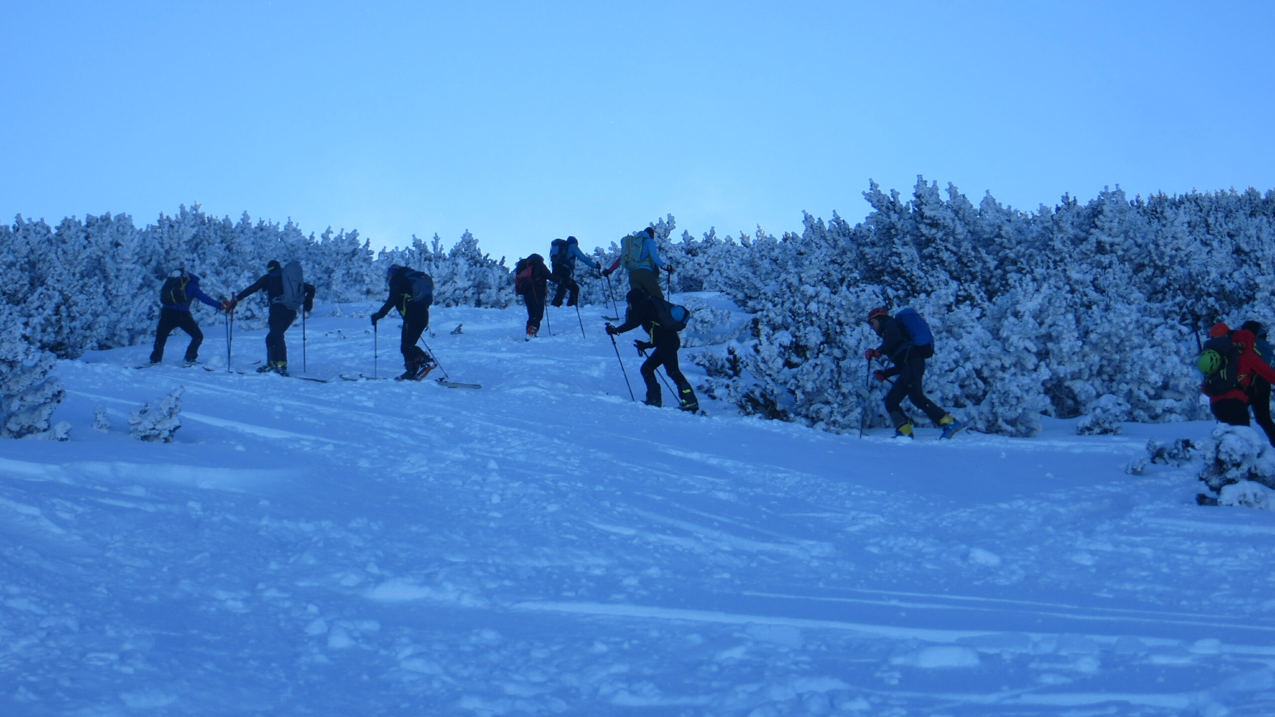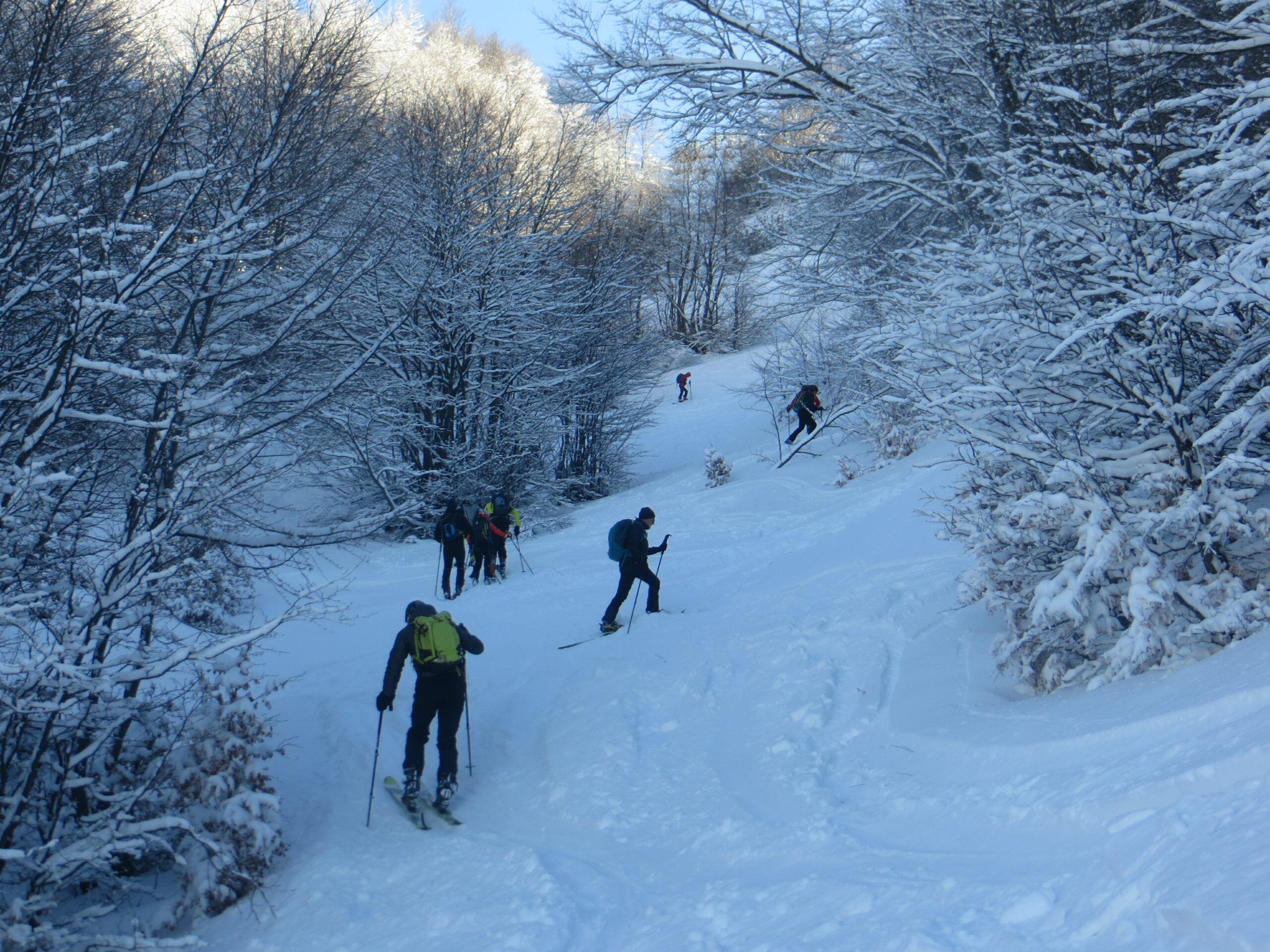 Si sale in cima con un tratto ripido (spesso zigzagando tra i mughi , se l’innevamento non è cospicuo).