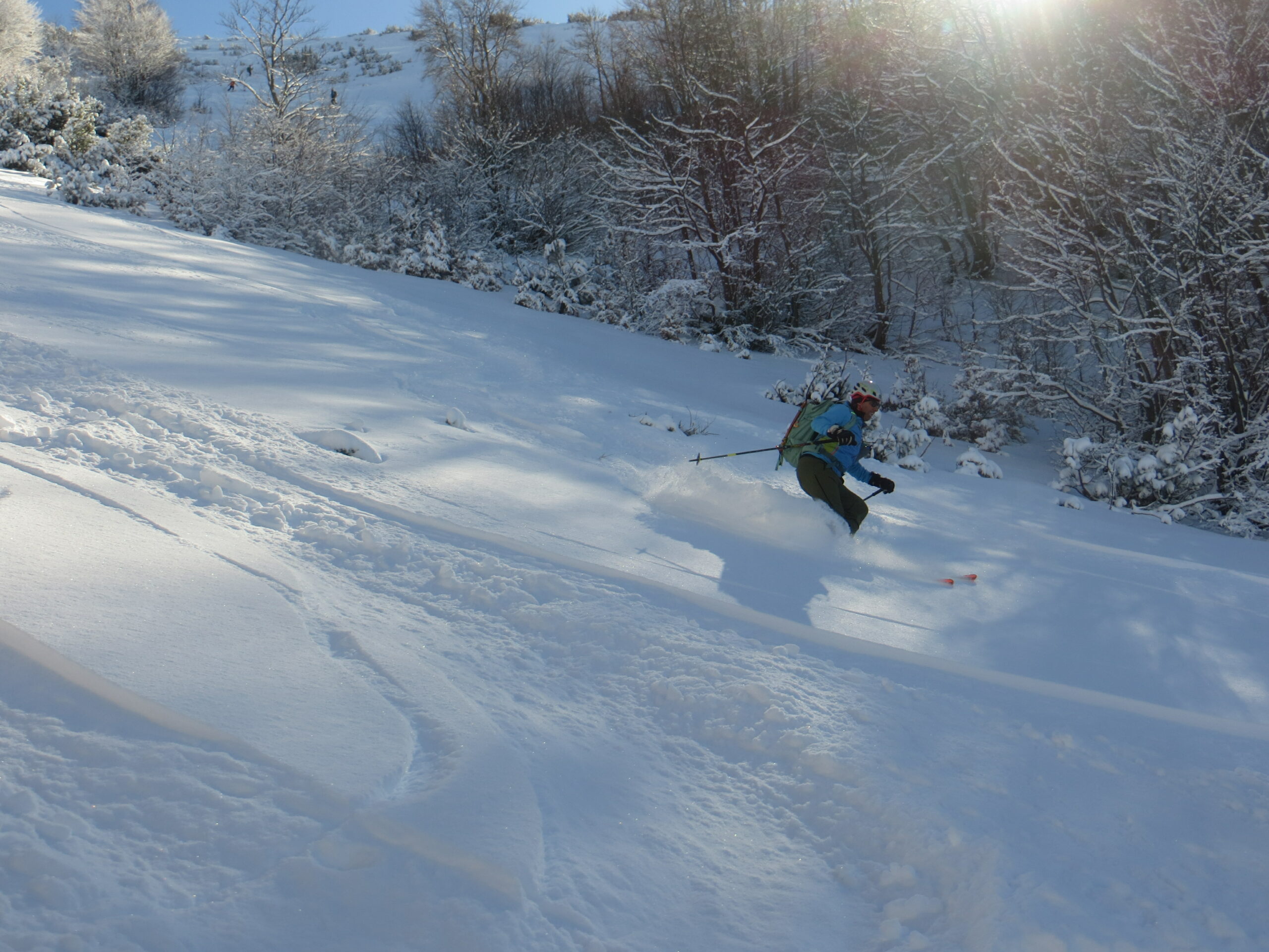 2° Discesa (V. Buglione): ci si dirige ora in direzione Nord entrando in breve nella V. Buglione che piega in direzione Nord-Ovest. Questa valle è più larga e solitamente più soleggiata. Anche qui si scende fino ad una quota a piacimento per poi ripellare e risalire sulla dx orografica fino a raggiungere nuovamente la balconata sovrastante.