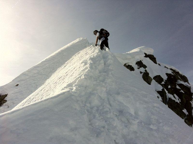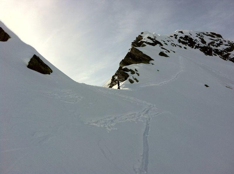 Fino al colle senza problema alcuno, dopo con ramponi e piccozza sulla crestina finale da tracciare con neve non trasformata e poco stabile. In punta alle 9:45, scesi alle 10:30 su neve ancora marmorea, nonostante la giornata di sole.